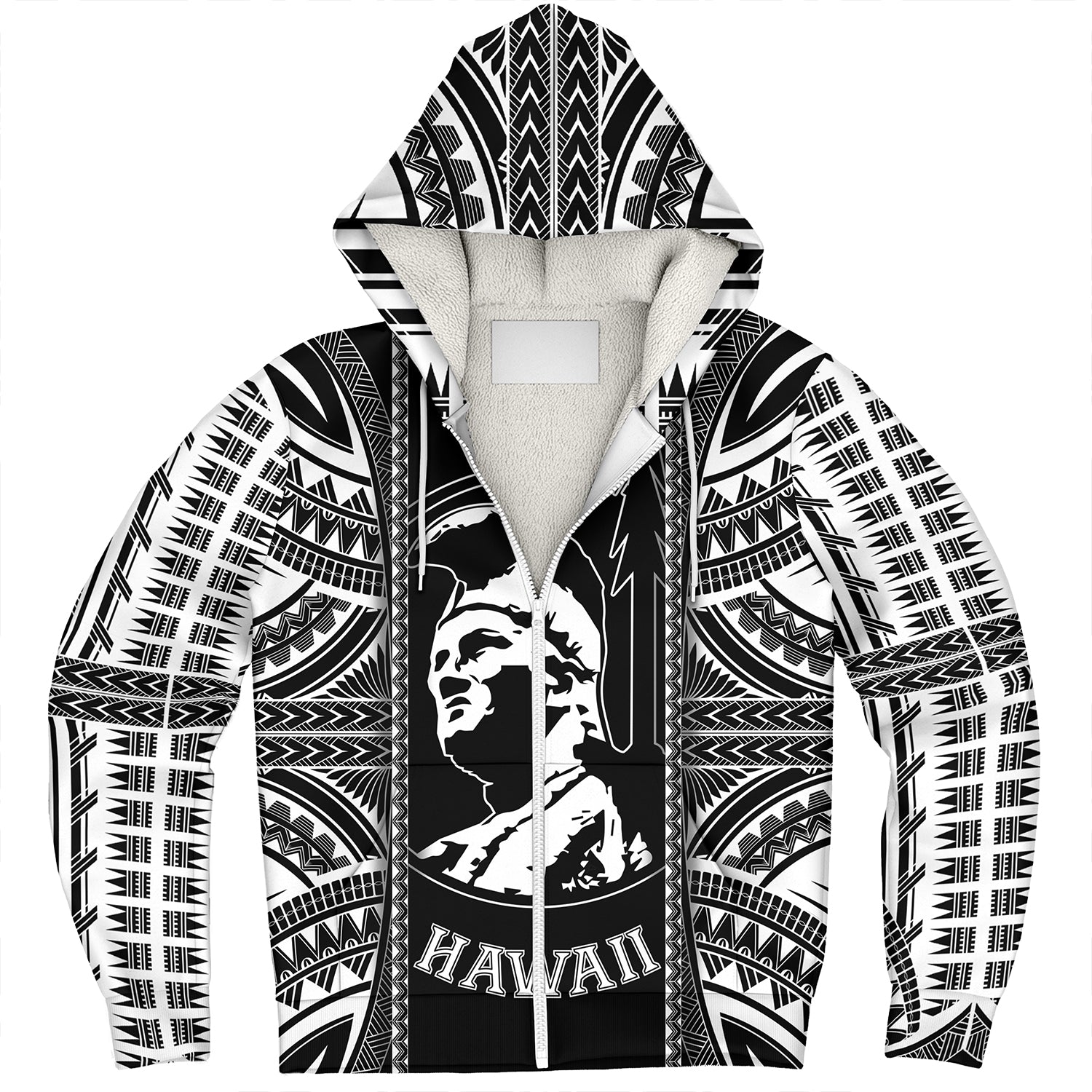 Hawaii Custom Personalised Sherpa Hoodie King Kamekameha Black and White Polynesian