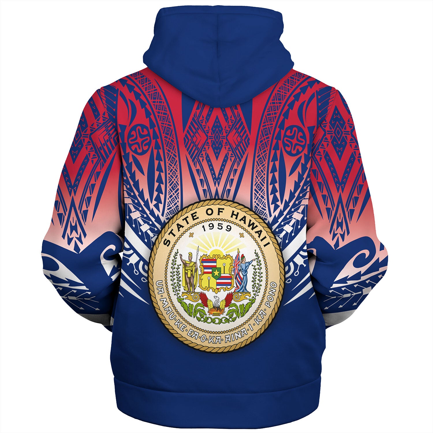 Hawaii Sherpa Hoodie Polynesian Tattoo Style Flag Color