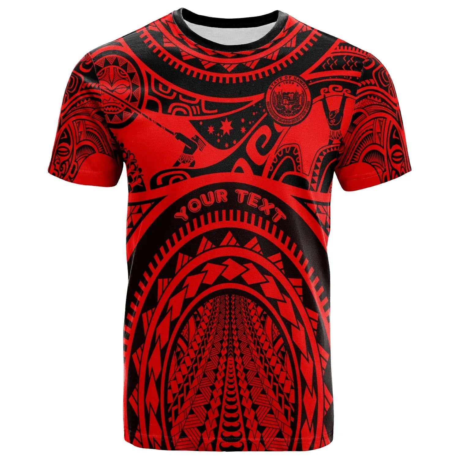 Hawaii Custom Personalised T-Shirt - Coat of Arm Hawaii & Polynesian Patterns Maui Tattoo