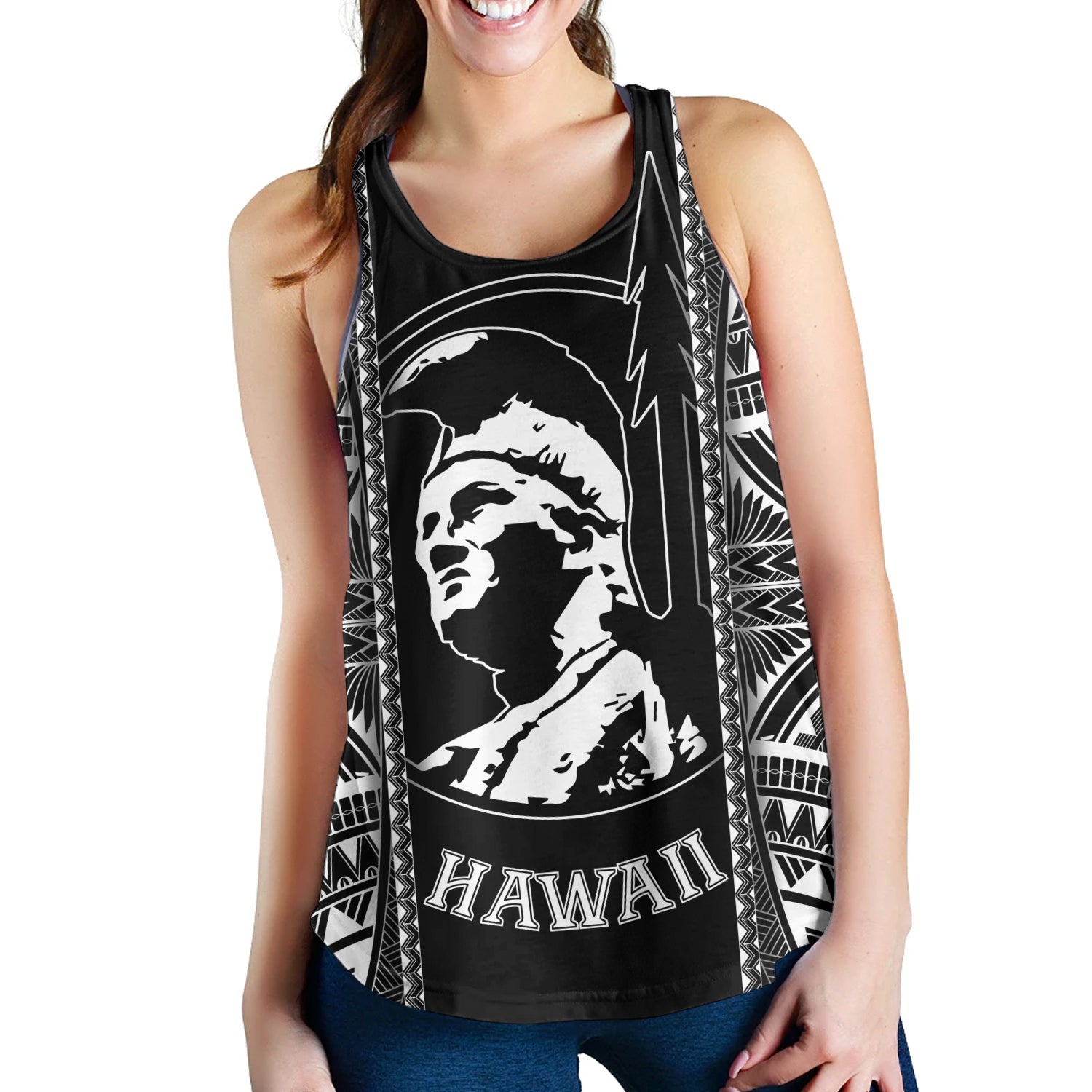Hawaii Custom Personalised Women Tank King Kamekameha Black and White Polynesian