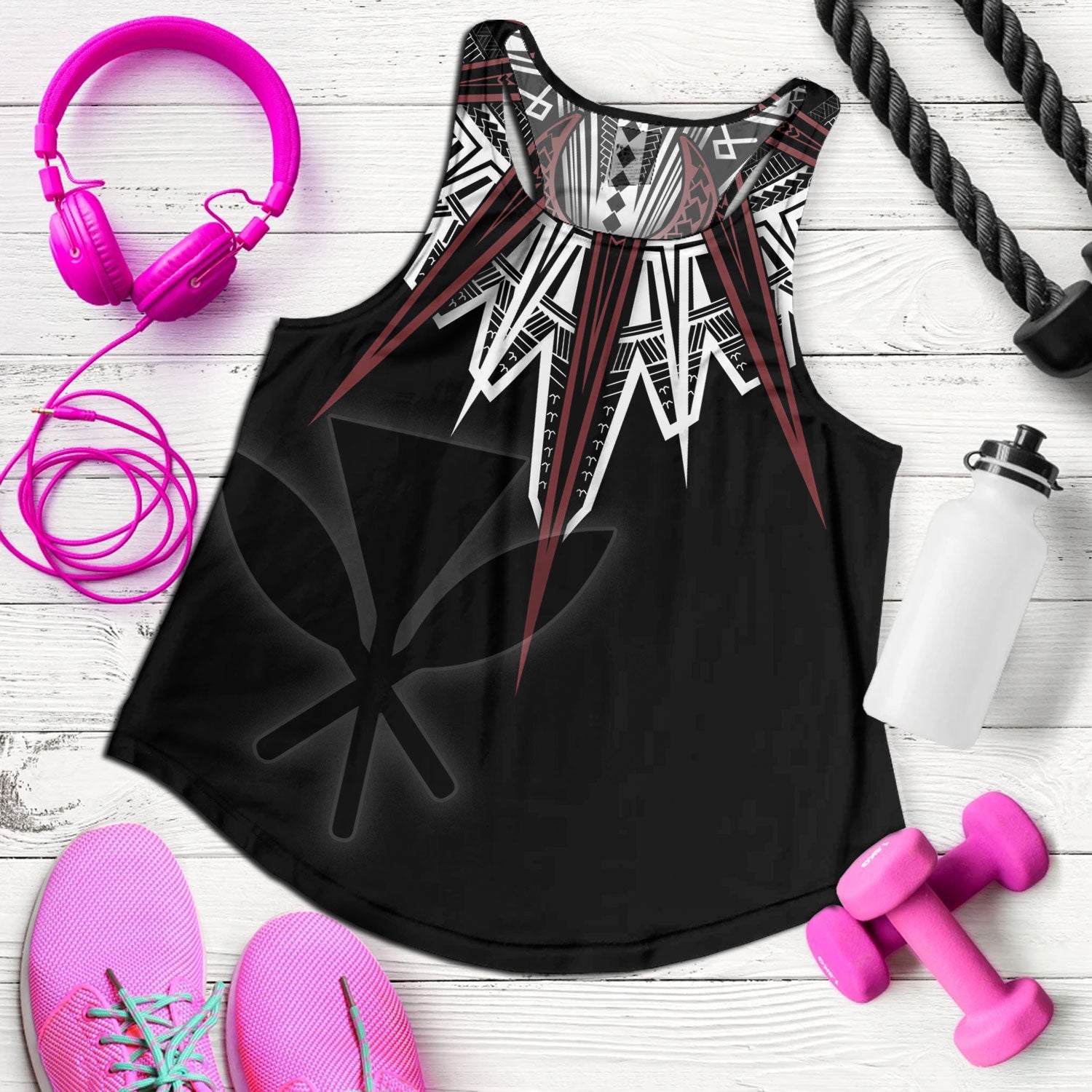 Hawaii Women Tank Tribal Patterns Manta Ray Tatau Style
