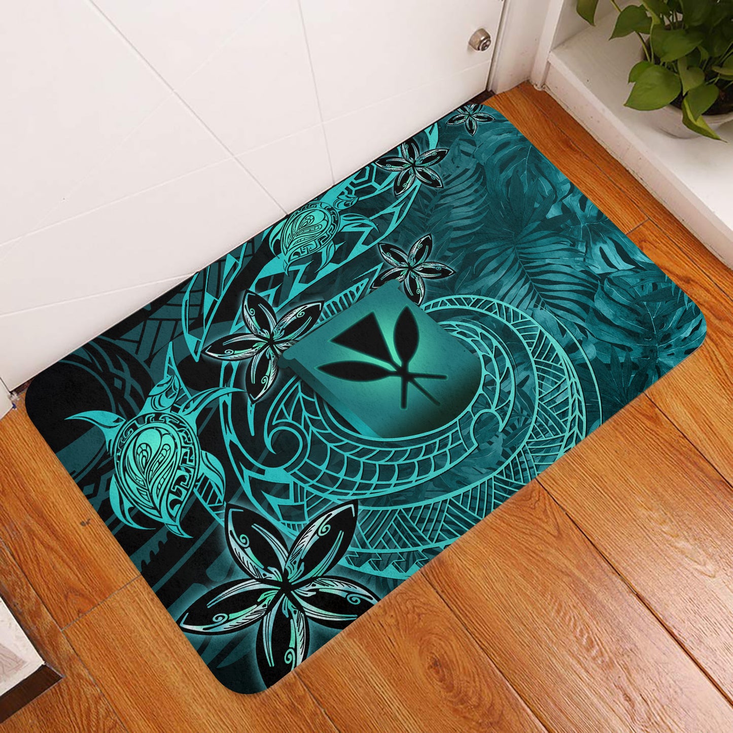 Hawaii Door Mat Kanaka Maoli Tropical Leaves Polynesian Pattern