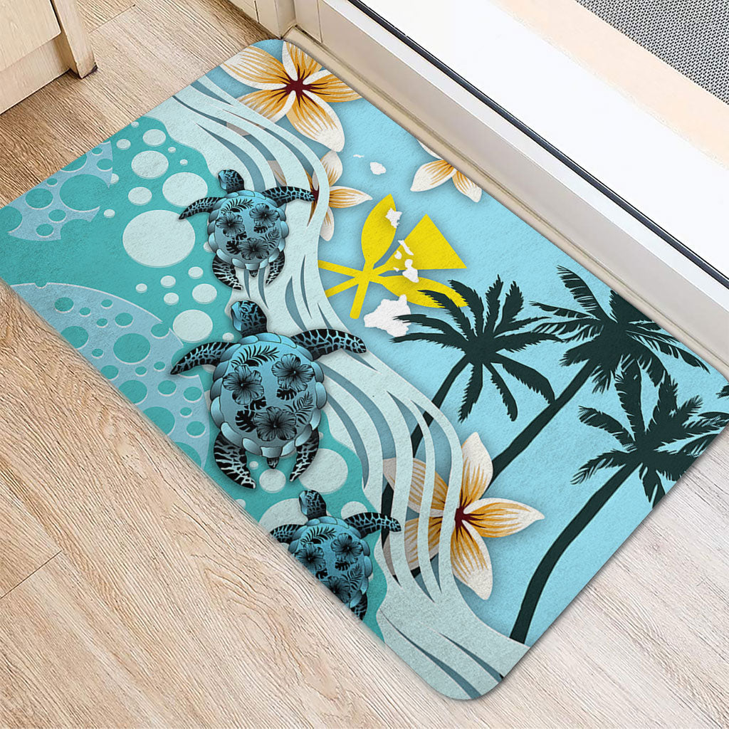 Hawaii Door Mat Kanaka Maoli Turte Blue Hibiscus