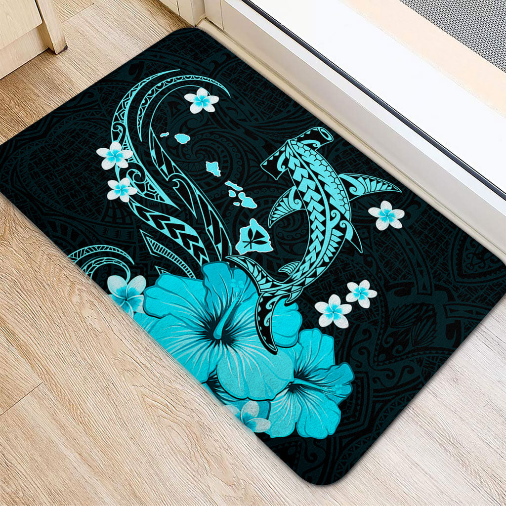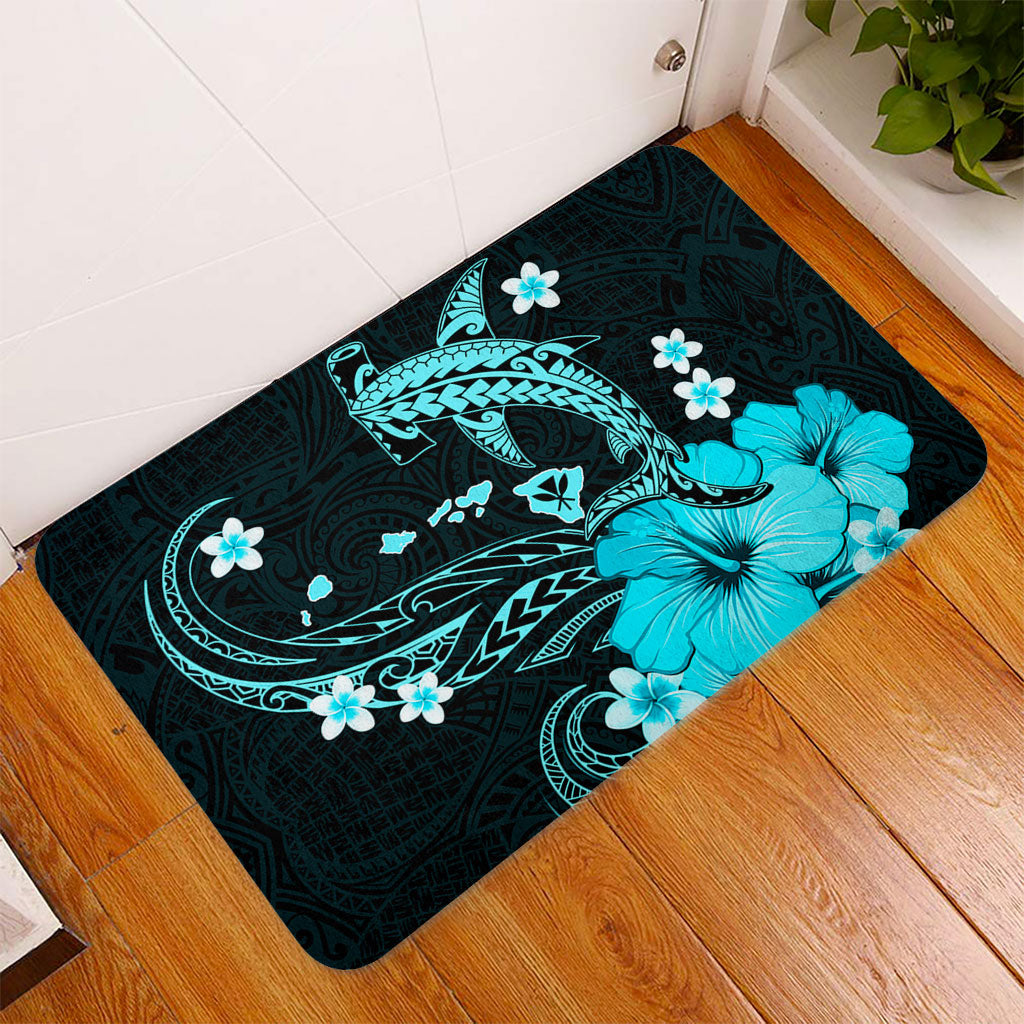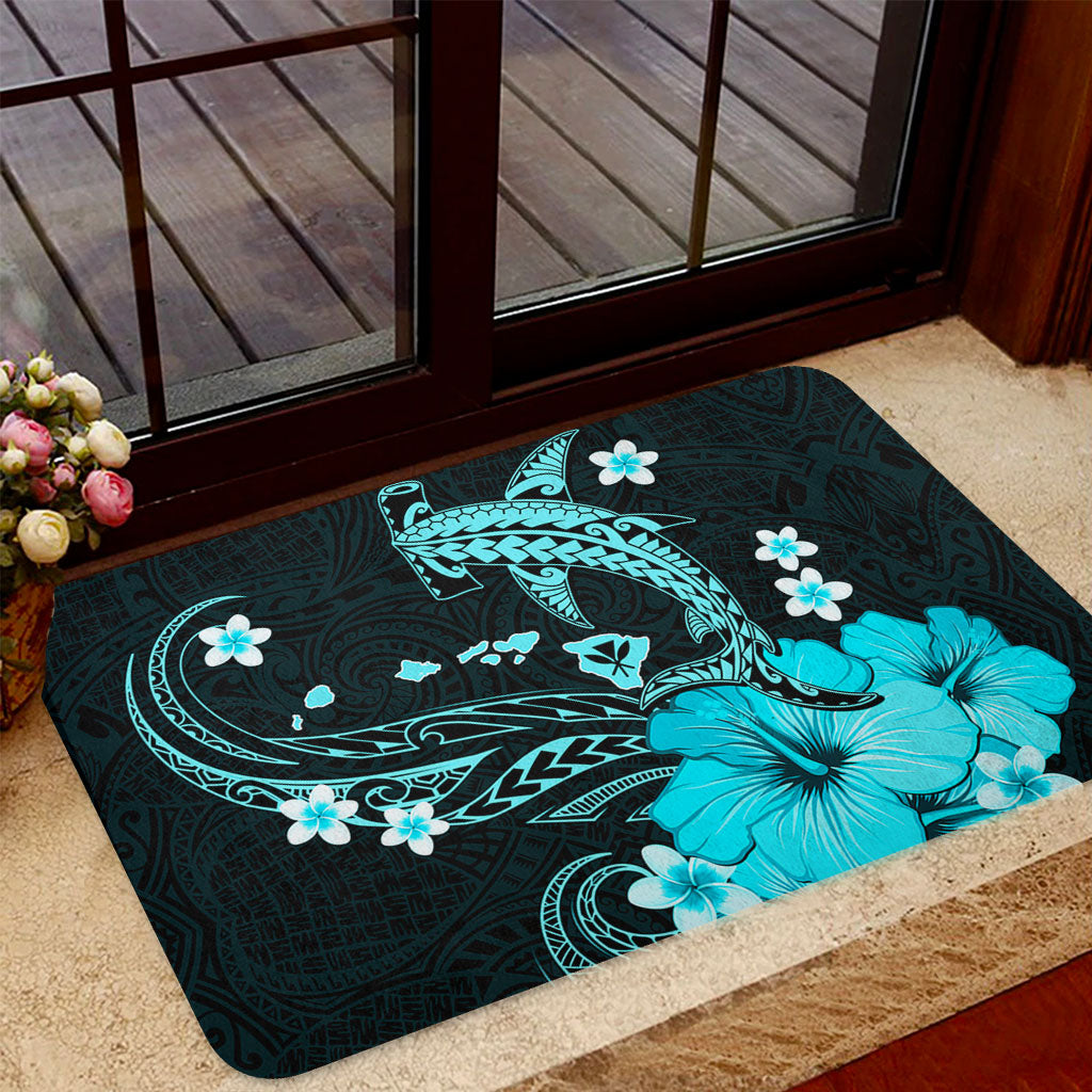 Hawaii Door Mat Kanaka Map And Shark Tribal Tattoo Turquoise