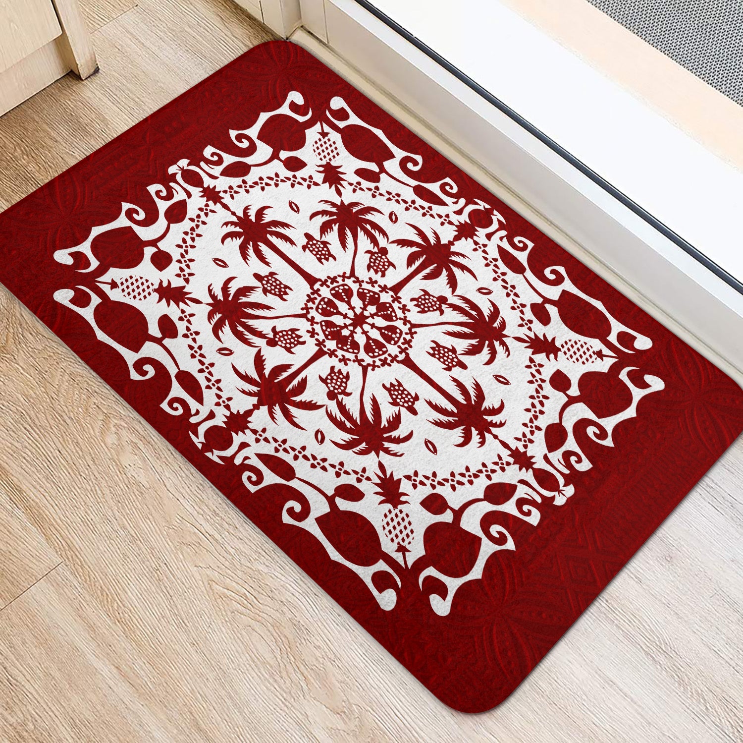 Hawaii Door Mat Red Hawaii Pattern Palm Trees and Turtles Polynesian