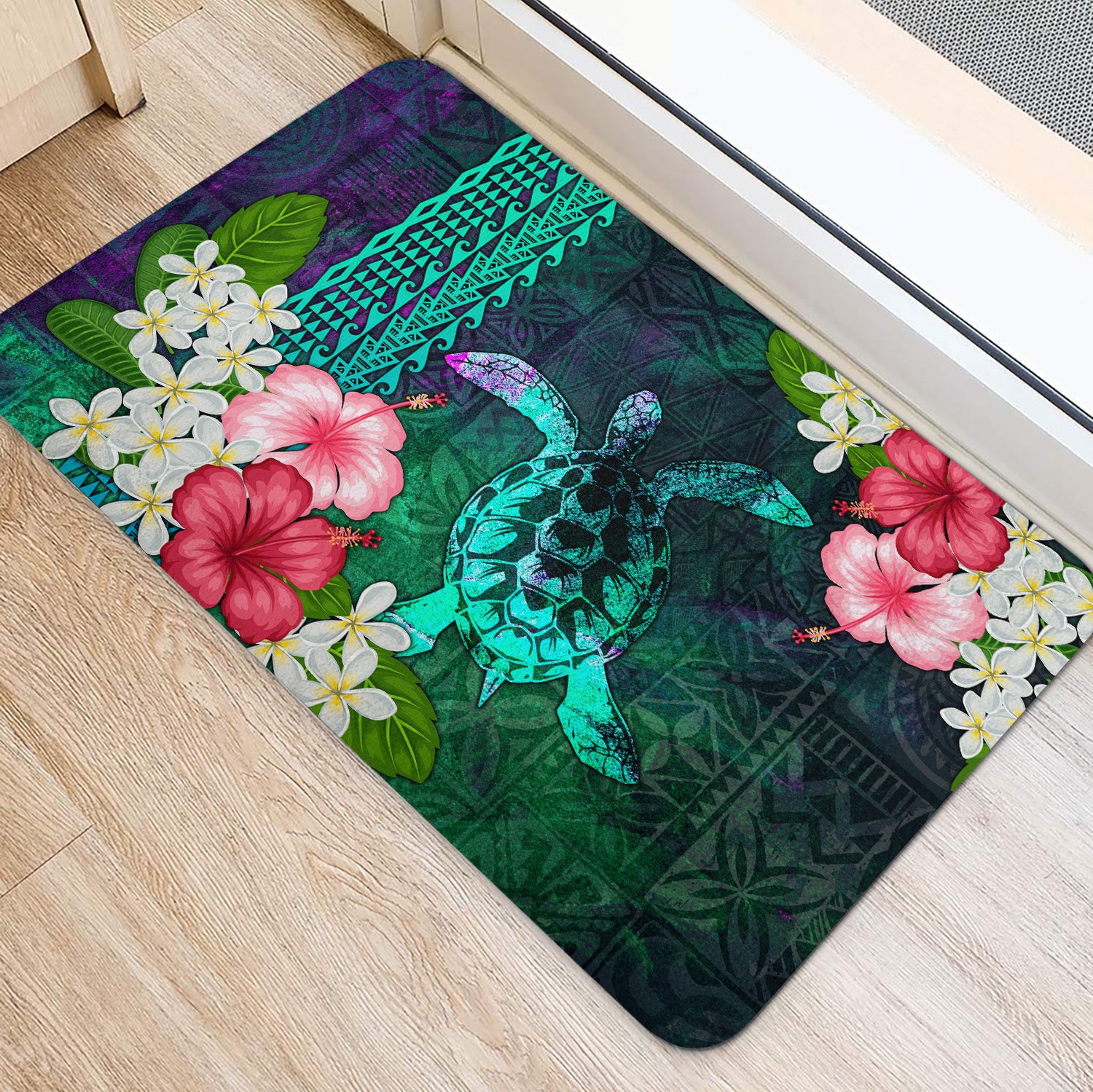 Hawaii Door Mat Sea Turtle Abstract Background With Tropical Flowers Hibiscus And Plumeria