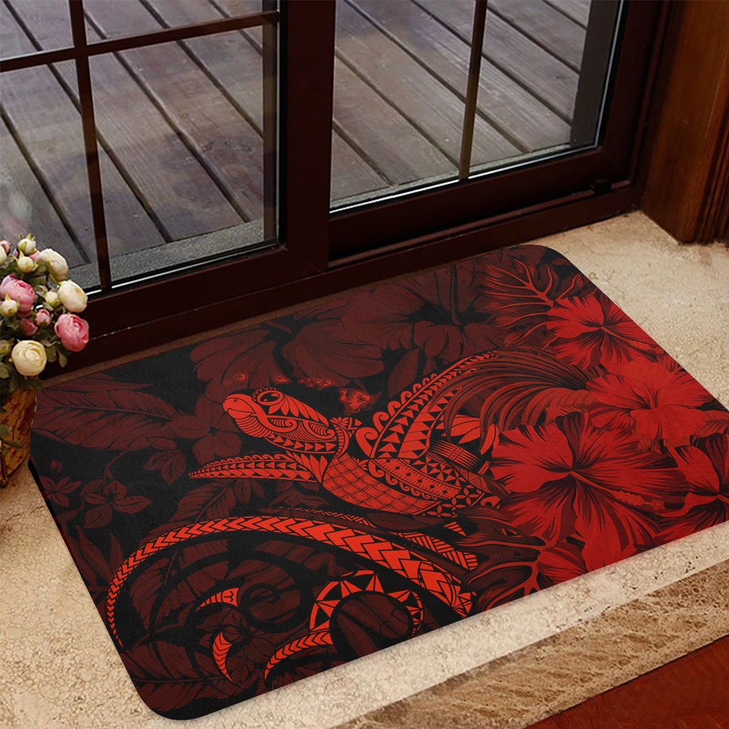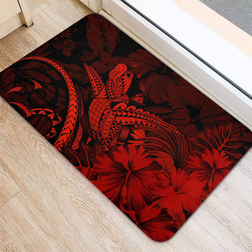 Hawaii Door Mat Turtle Polynesian With Hibiscus Flower