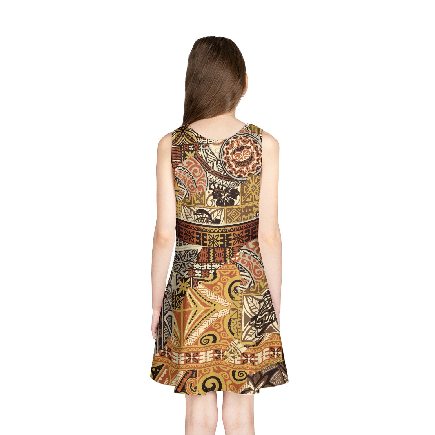 Hawaii Girls Sleeveless Sundress Hawaiian Tapa Pattern Vintage Style