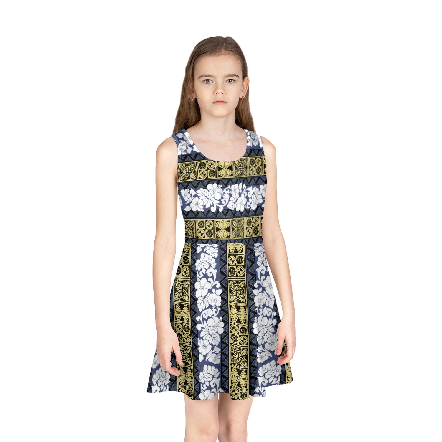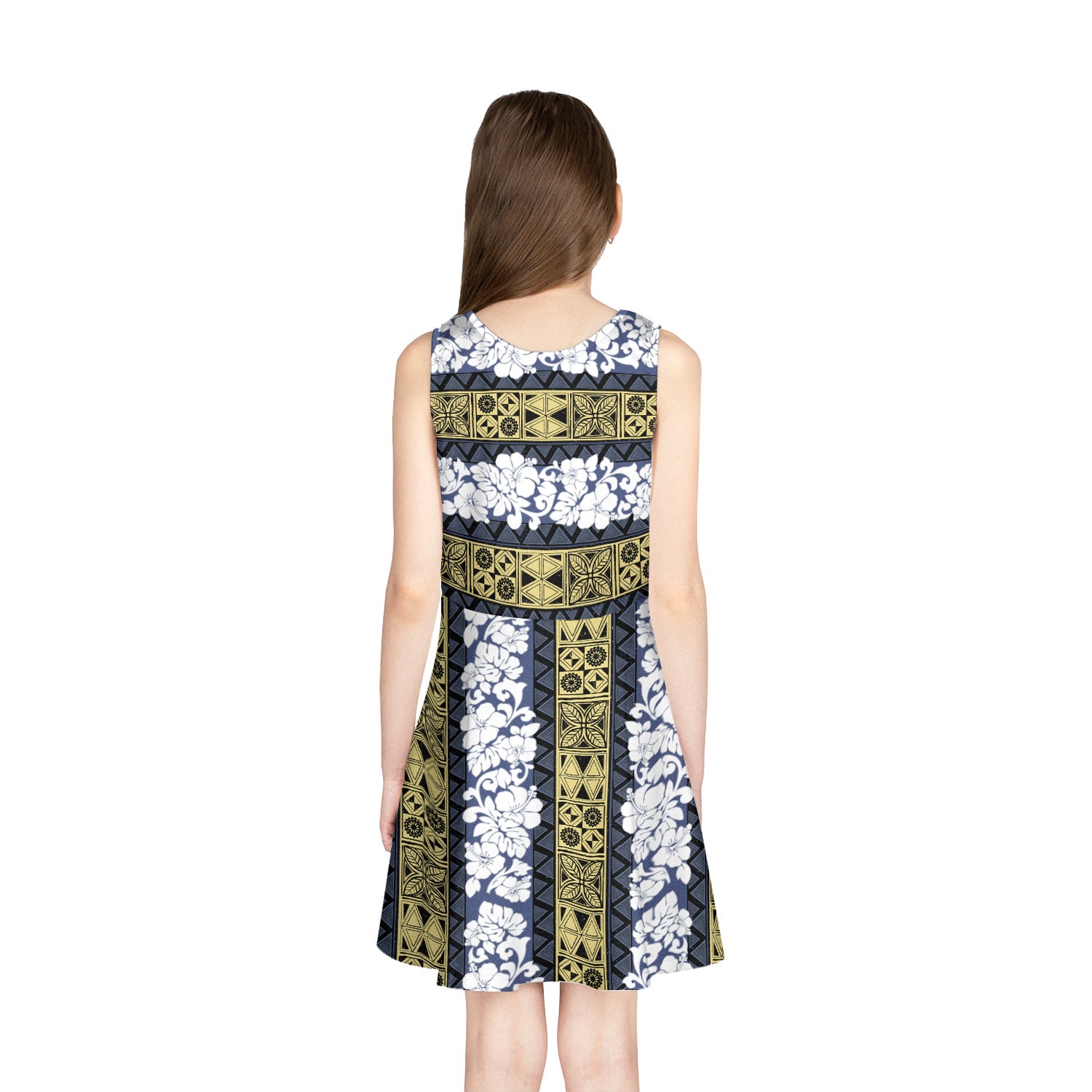 Hawaii Girls Sleeveless Sundress Hibiscus Flowers Tapa Patterns