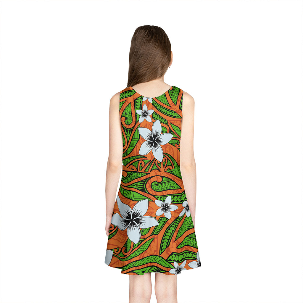 Hawaii Girls Sleeveless Sundress Maori Pattern Plumeria