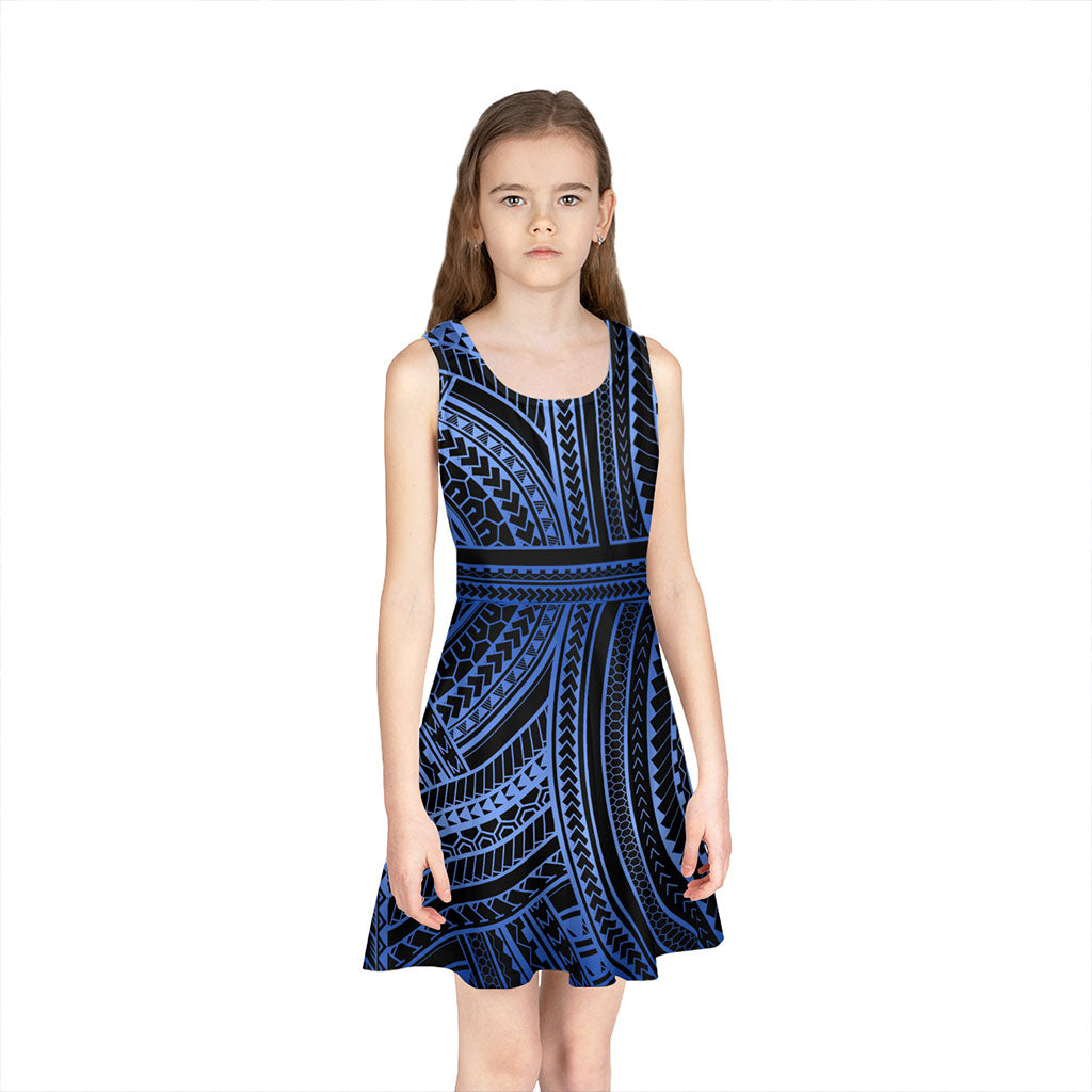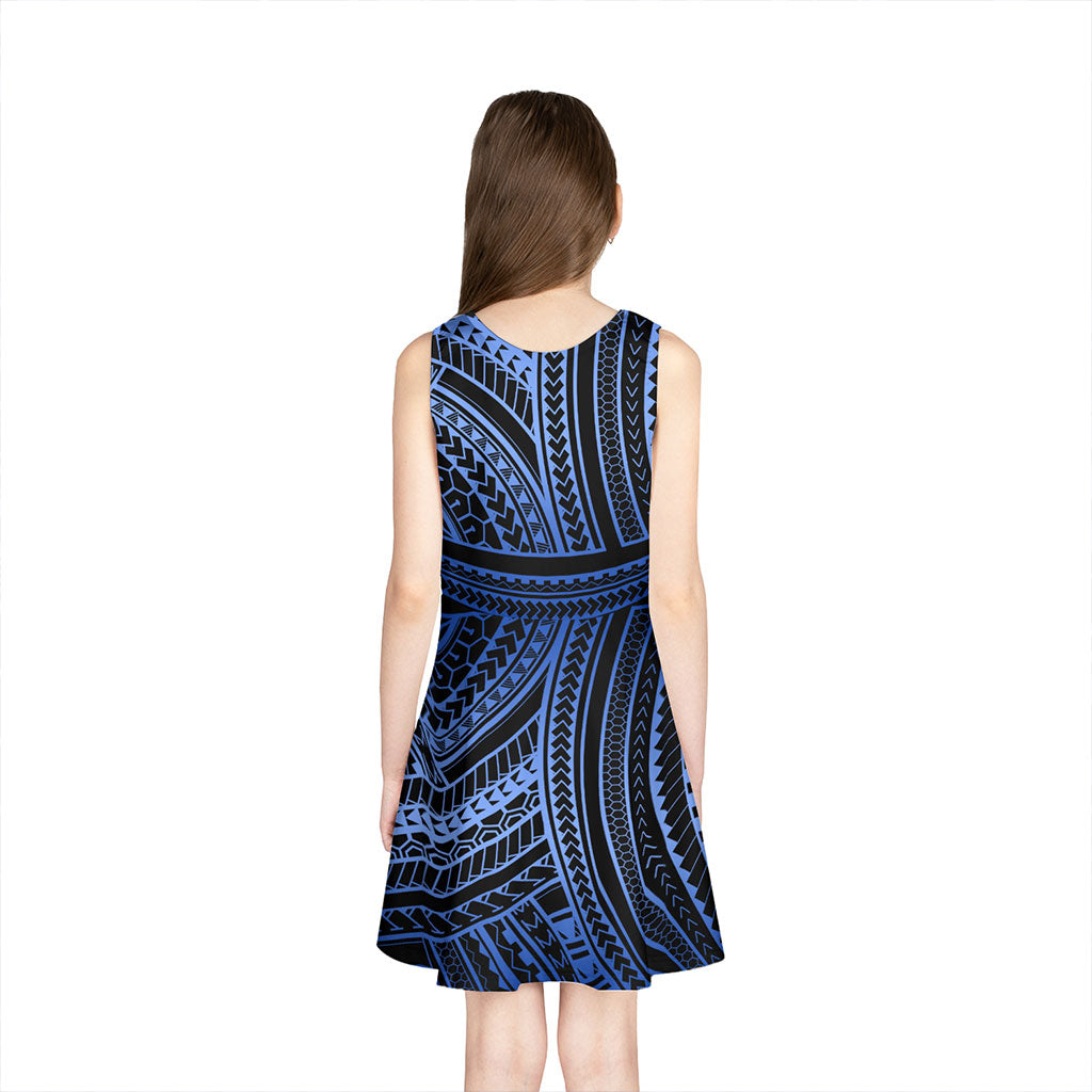 Hawaii Girls Sleeveless Sundress Polynesia Pattern Tattoo Blue