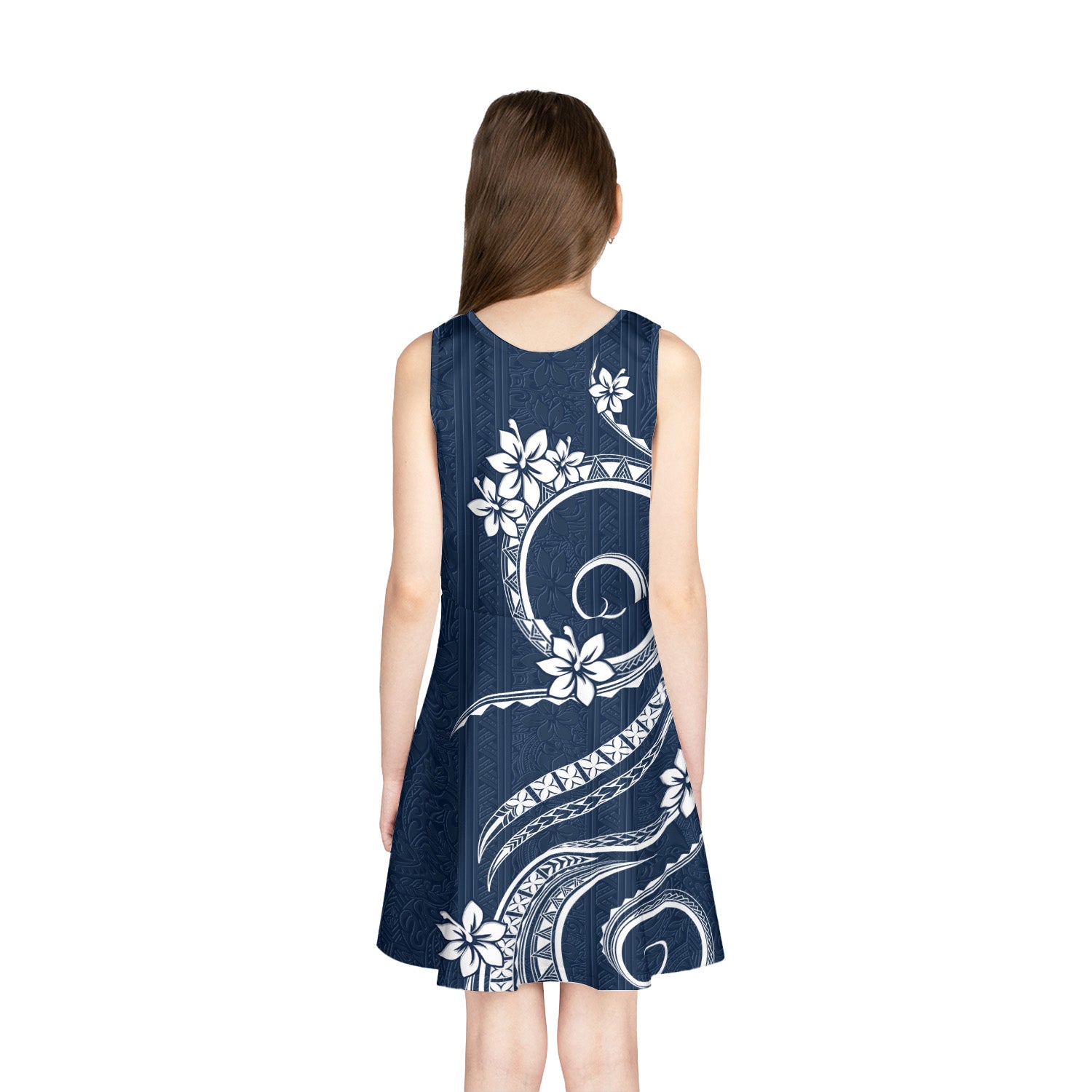 Hawaii Girls Sleeveless Sundress Polynesian Pattern Blue Version