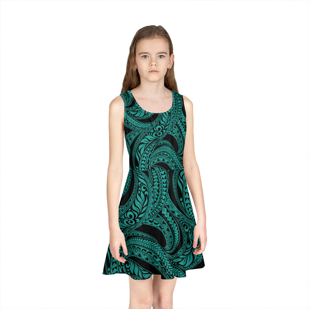 Hawaii Girls Sleeveless Sundress Tribal Pattern Polynesian Turquoise