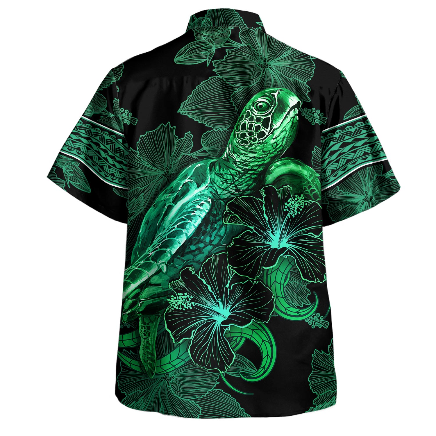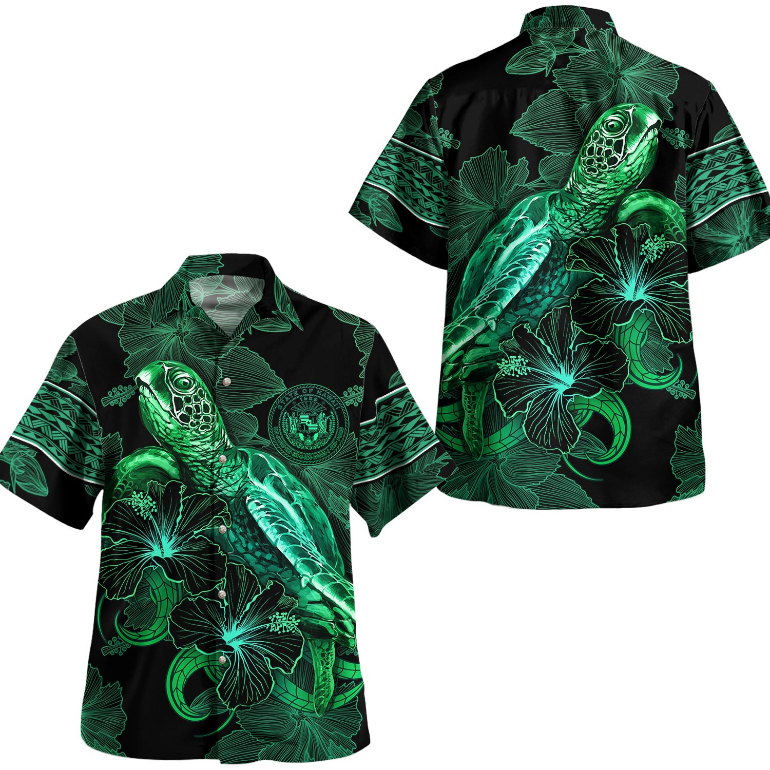 Hawaii Hawaiian Shirt Sea Turtle With Blooming Hibiscus Flowers Tribal Green