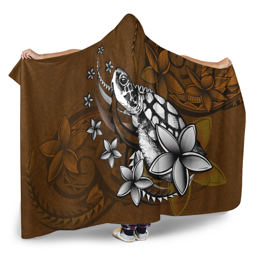 Hawaii Hooded Blanket Sea Turtle With Plumeria Polynesian Patterns Retro Style