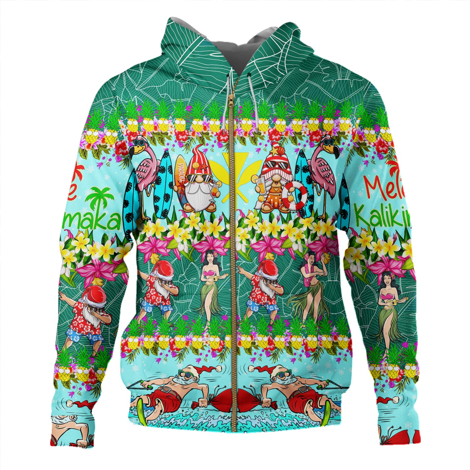 Hawaii Hoodie Dabbing Santa Hula Dance Tropical Gnomes Aloha Mele Kalikimaka Christmas