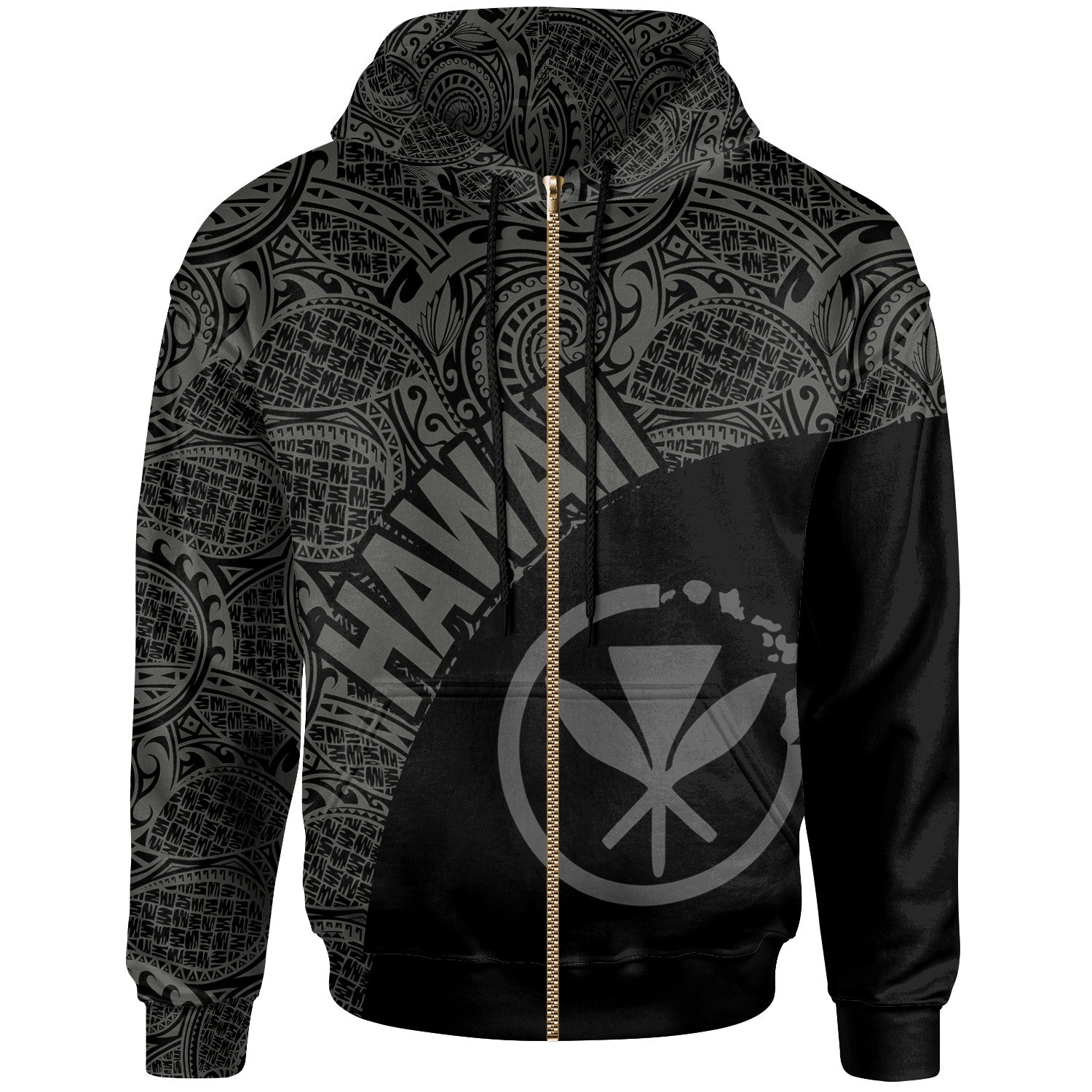 Hawaii Hoodie - Hawaii Kanaka Maoli Polynesian Tattoo Black Gray Version6