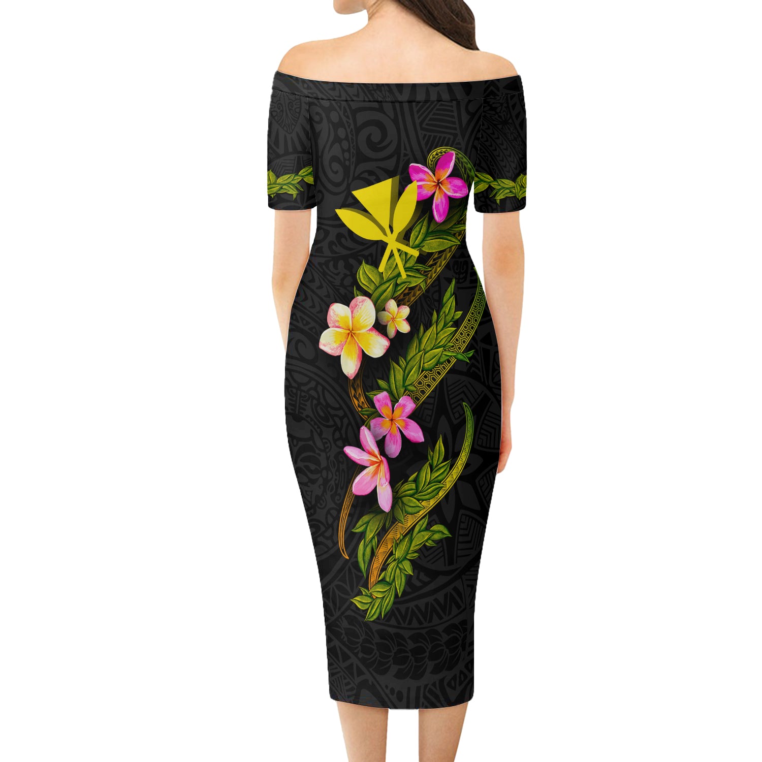 Hawaii Kanaka Maoli Short Sleeve Off The Shoulder Lady Dress Plumeria Tribal