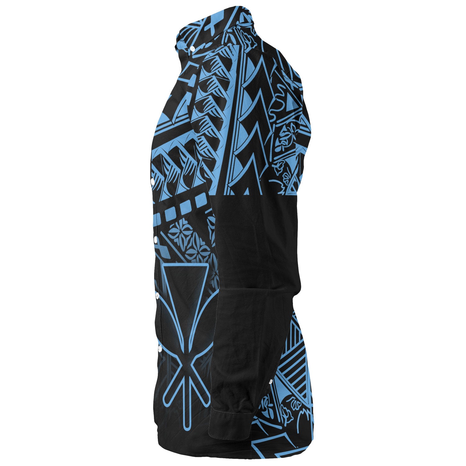 Hawaii Long Sleeve Shirt Custom Kanaka Maoli Hawaiian Blue Tribal Pattern