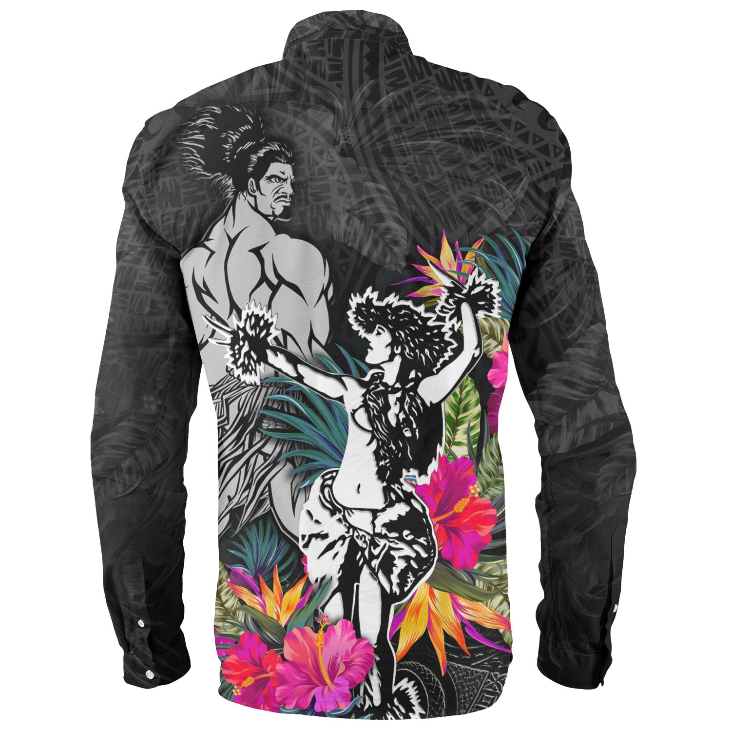 Hawaii Long Sleeve Shirt Hawaiian Girl And Warrior With Tropical Flowers