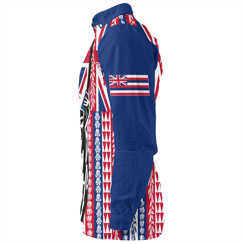 Hawaii Long Sleeve Shirt King Aloha Flag With Flower Lie Beautiful