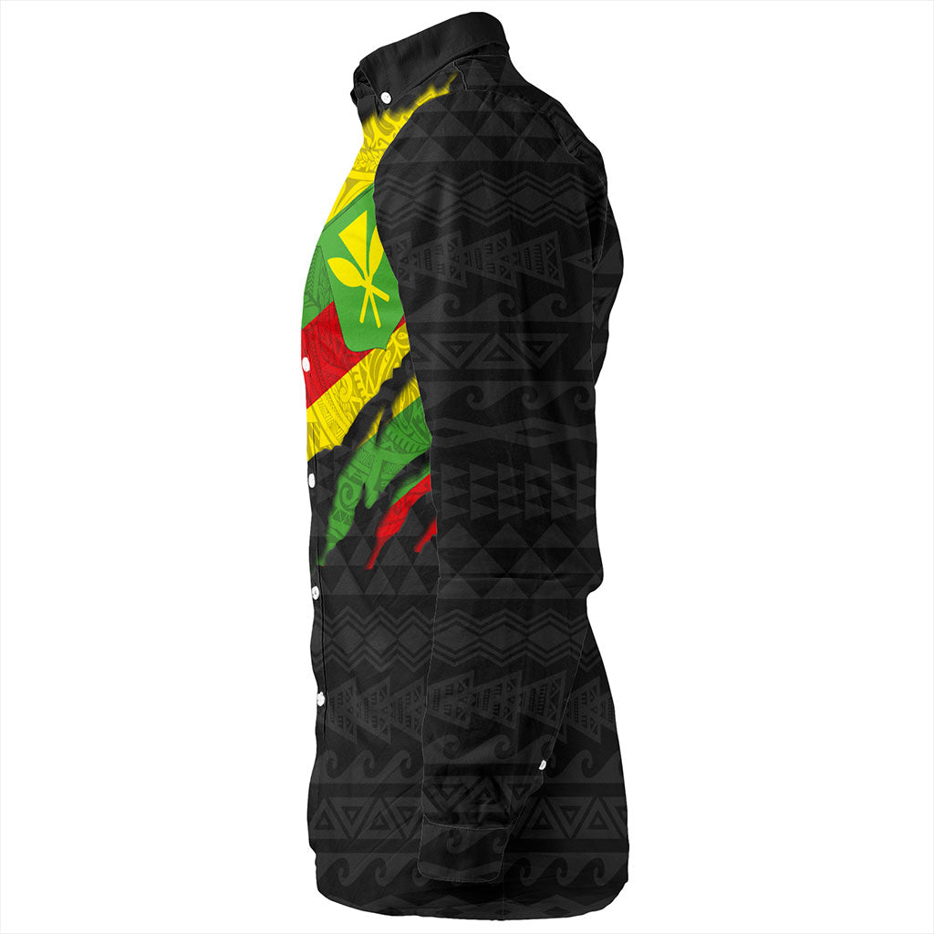 Hawaii Long Sleeve Shirt Polynesia Tribal Kanaka Maoli Flag Crack Style