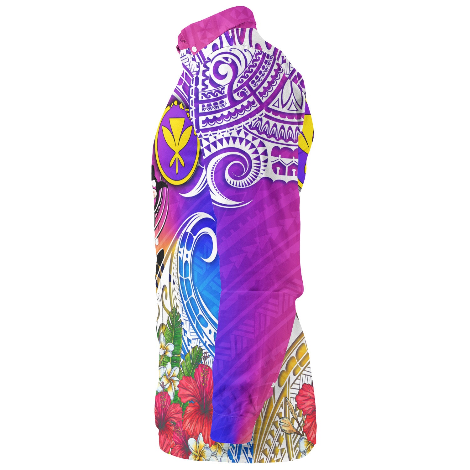 Hawaii Long Sleeve Shirt Turtle Polynesian Tribal Tropical Flowers