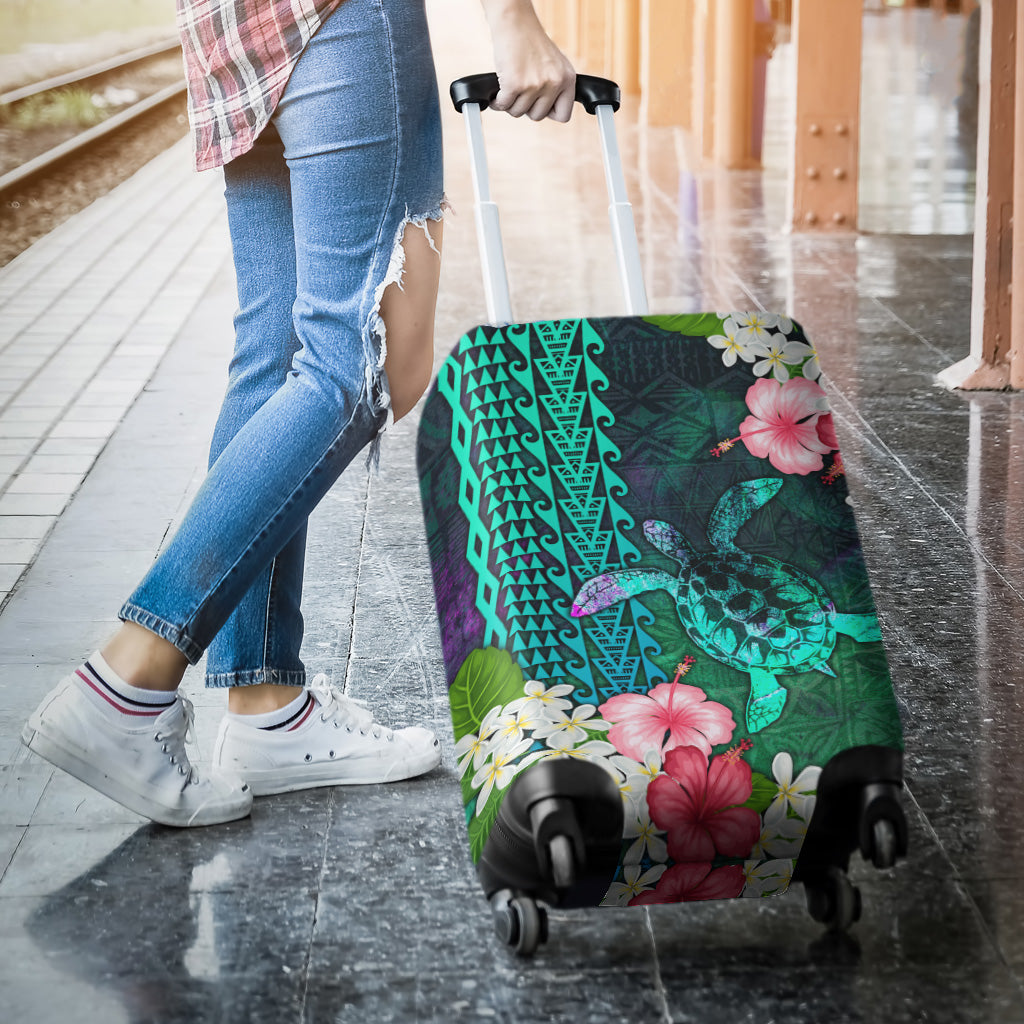 Hawaii Luggage Cover Sea Turtle Abstract Background With Tropical Flowers Hibiscus And Plumeria