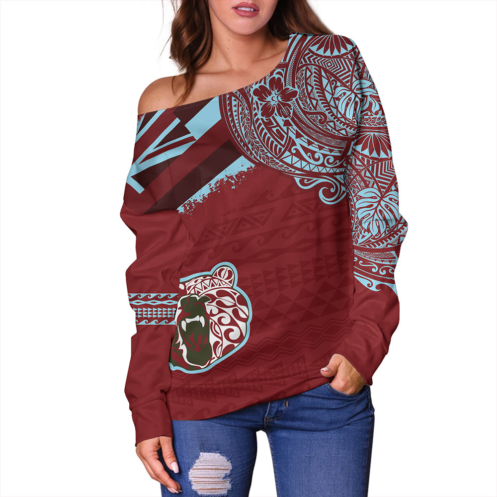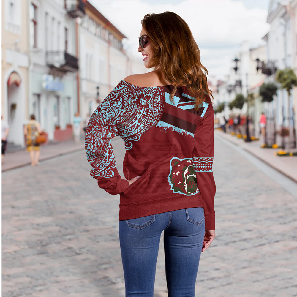 Hawaii Off Shoulder Sweatshirt Henry Perrine Baldwin High School With Crest Style