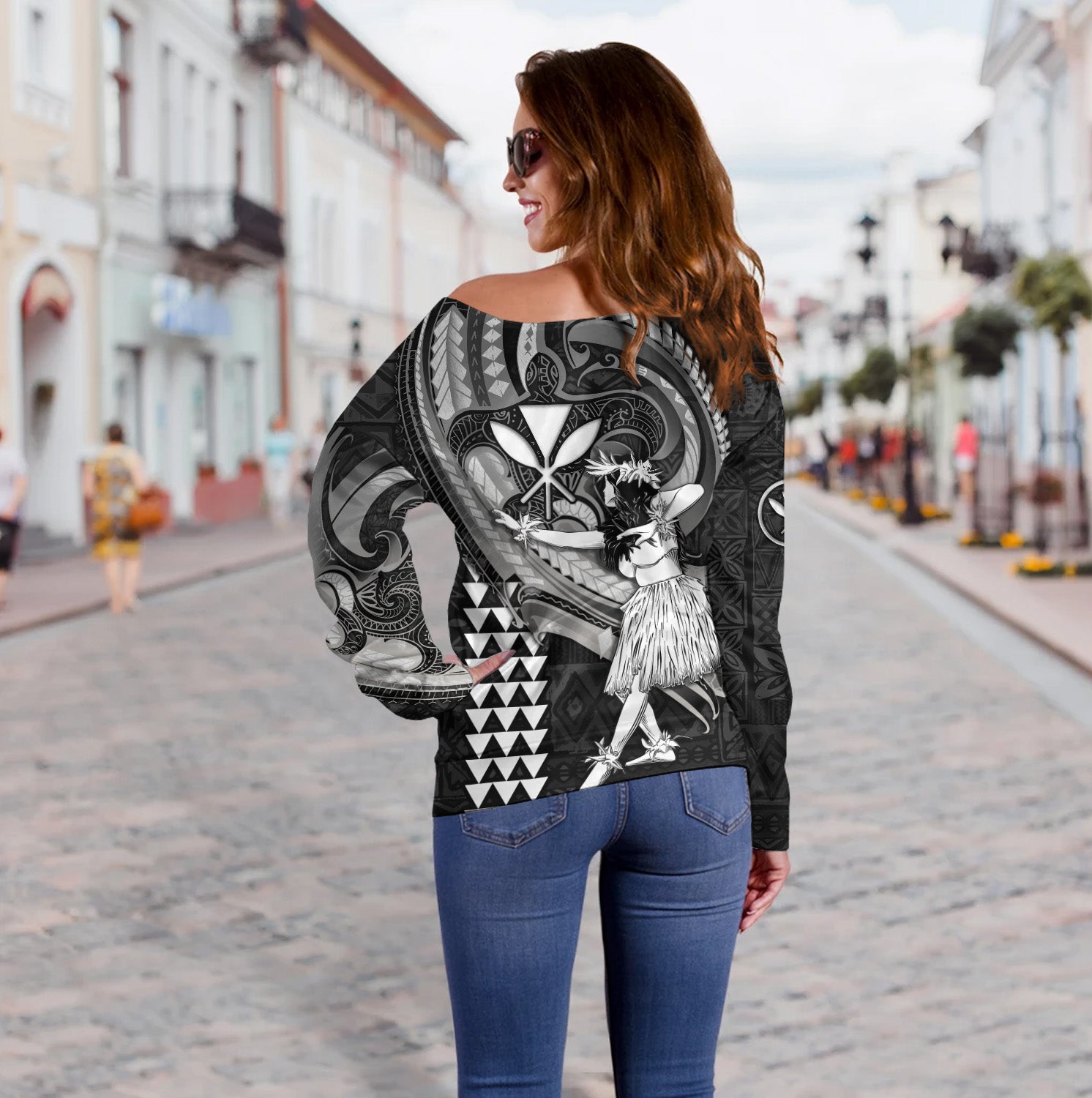 Hawaii Off Shoulder Sweatshirt Kanaka Maoli Hula Girls Polynesian Traditional Tattoo