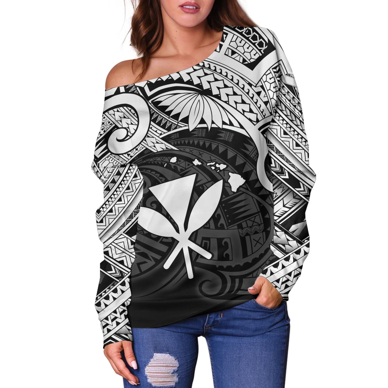 Hawaii Off Shoulder Sweatshirt Kanaka Maoli Map Polynesian Tatau