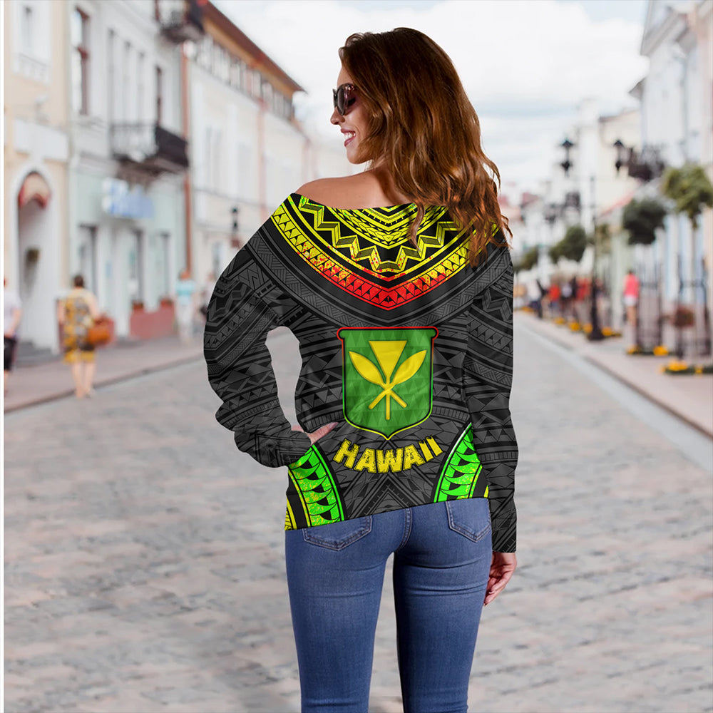 Hawaii Off Shoulder Sweatshirt Kanaka Maoli Polynesian Pattern Bet
