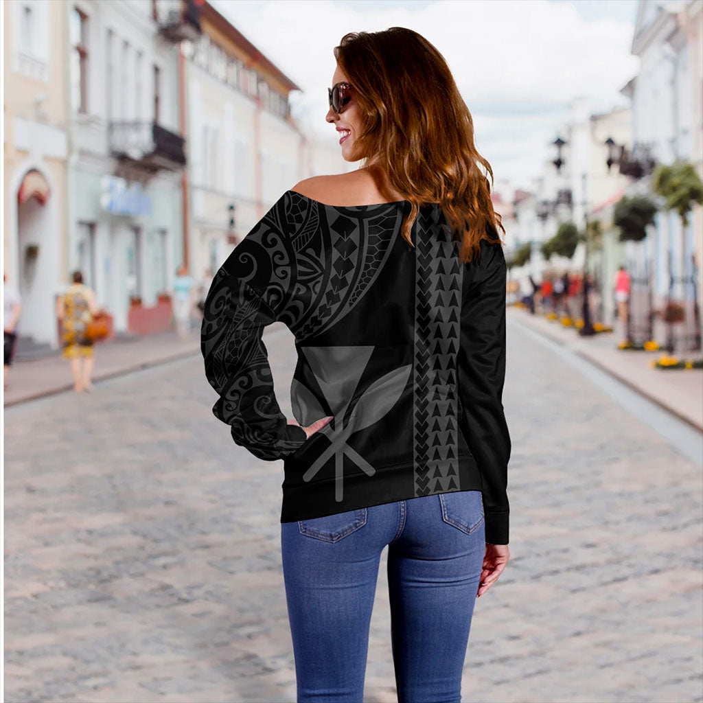 Hawaii Off Shoulder Sweatshirt Kanaka Maoli Polynesian Tribal Simple Style