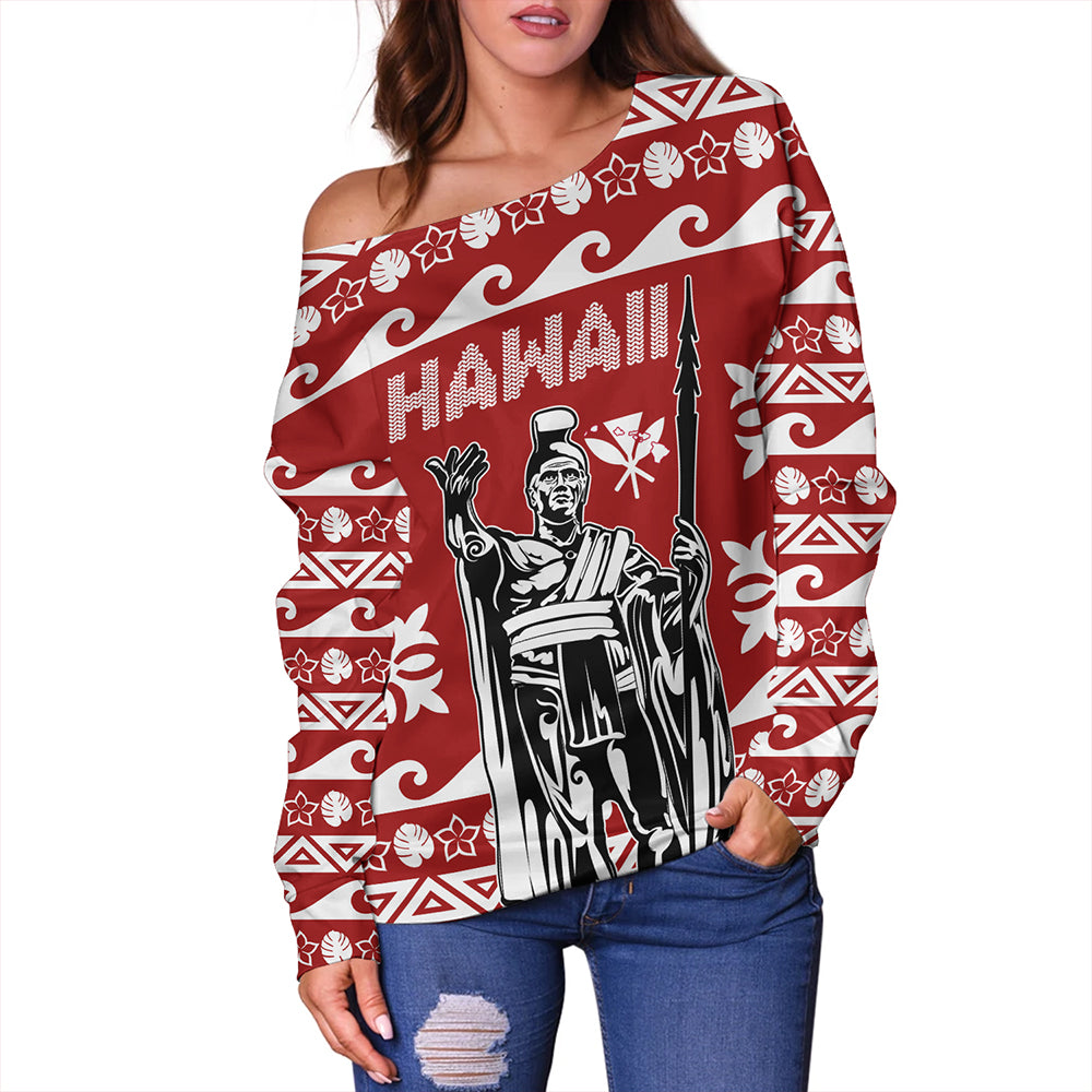 Hawaii Off Shoulder Sweatshirt King Native Hawaiian Kakau Pattern Christmas
