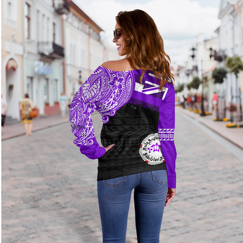 Hawaii Off Shoulder Sweatshirt Ni'ihau High and Elementary School With Crest Style