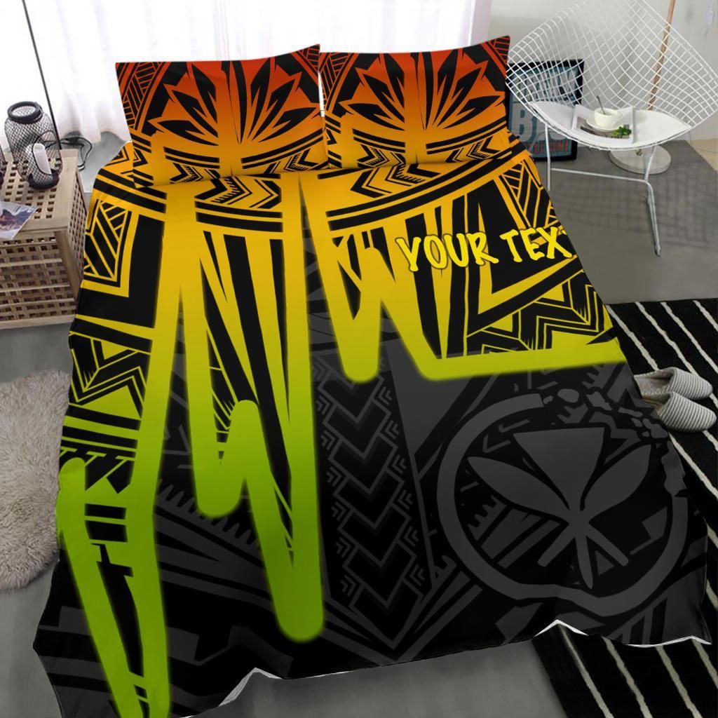 Hawaii Personalised Bedding Set - Kanaka Maoli With Polynesian Pattern In Heartbeat Style (Reggae)