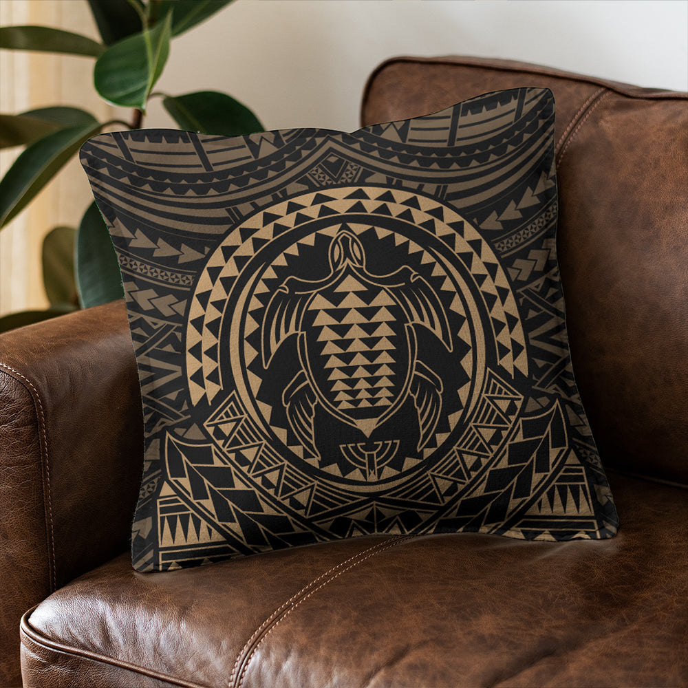 Hawaii Pillow Cover Kakau Honu Arc Polynesian Gold