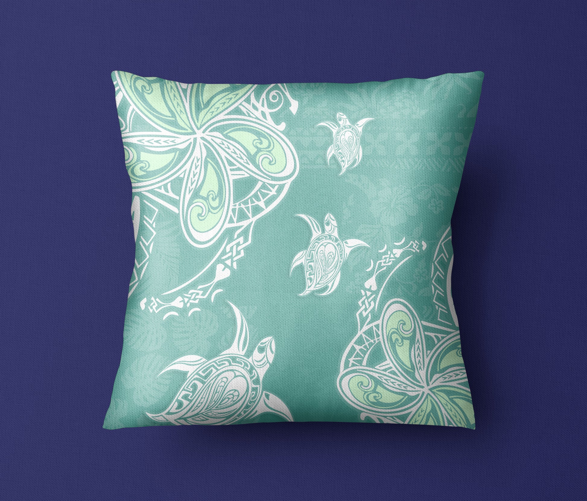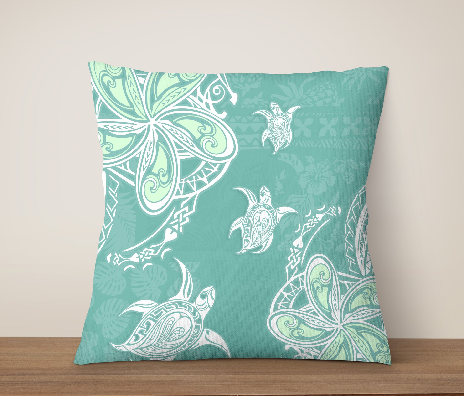 Hawaii Pillow Cover Polynesian Pattern Plumeria Turtles