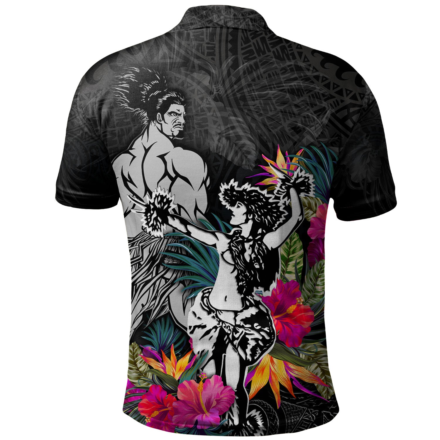 Hawaii Polo Shirt Hawaiian Girl And Warrior With Tropical Flowers