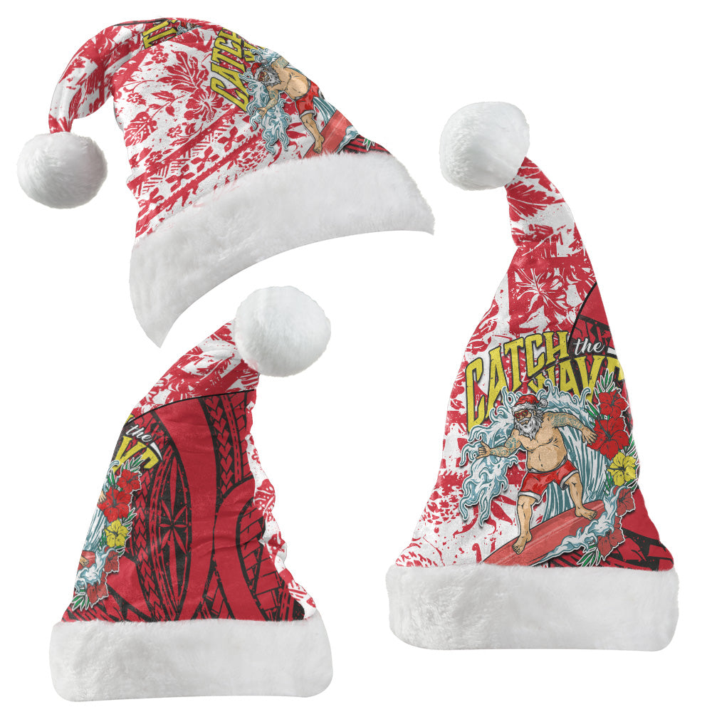 Hawaii Polynesian Christmas Hat - Surfing Santa Polynesian Pattern Vintage Style Hat