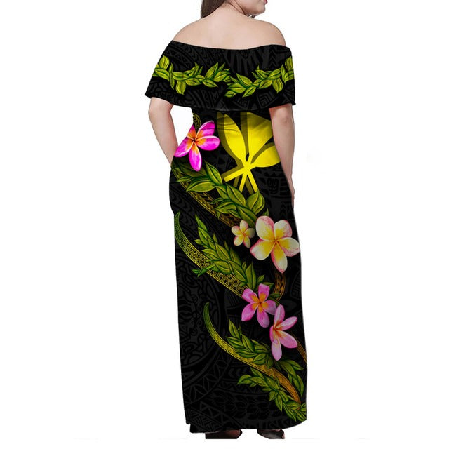 - Our Women Off Shoulder Long Dress and Hawaiian Shirts made of 95% Polyester and 5% spandex manufactures high-quality thermal-transfer printed products and keeps you comfortable, cool, and dry while you work and play.