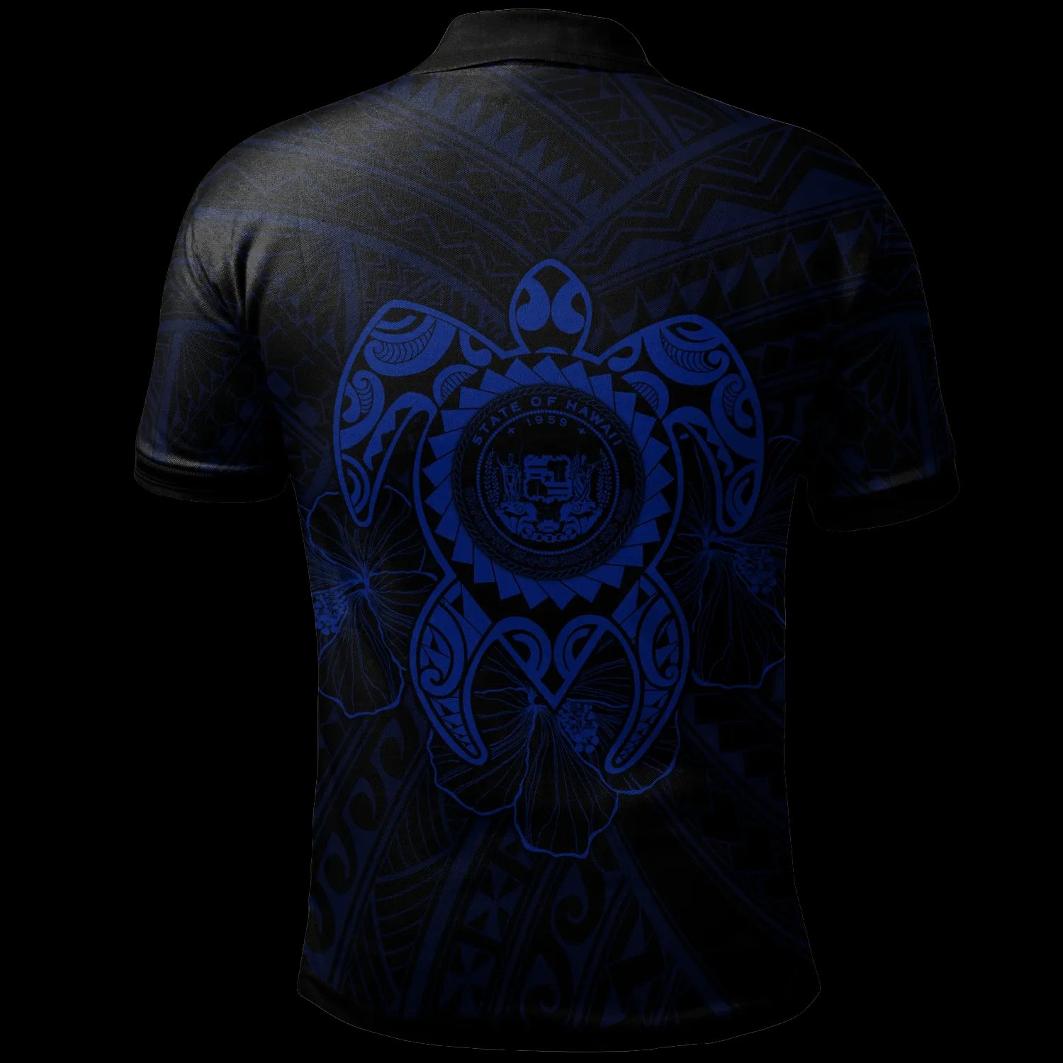 Hawaii Polynesian Polo-Shirt - Vintage Polynesian Turtle (Blue)