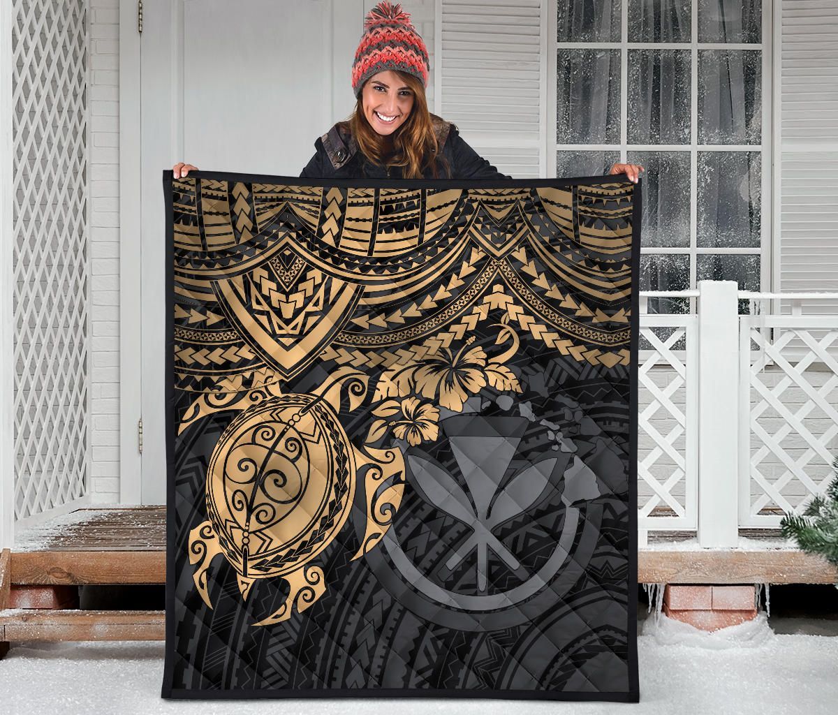 Hawaii Polynesian Premium Quilt - Kanaka Maoli & Gold Turtle Hibiscus
