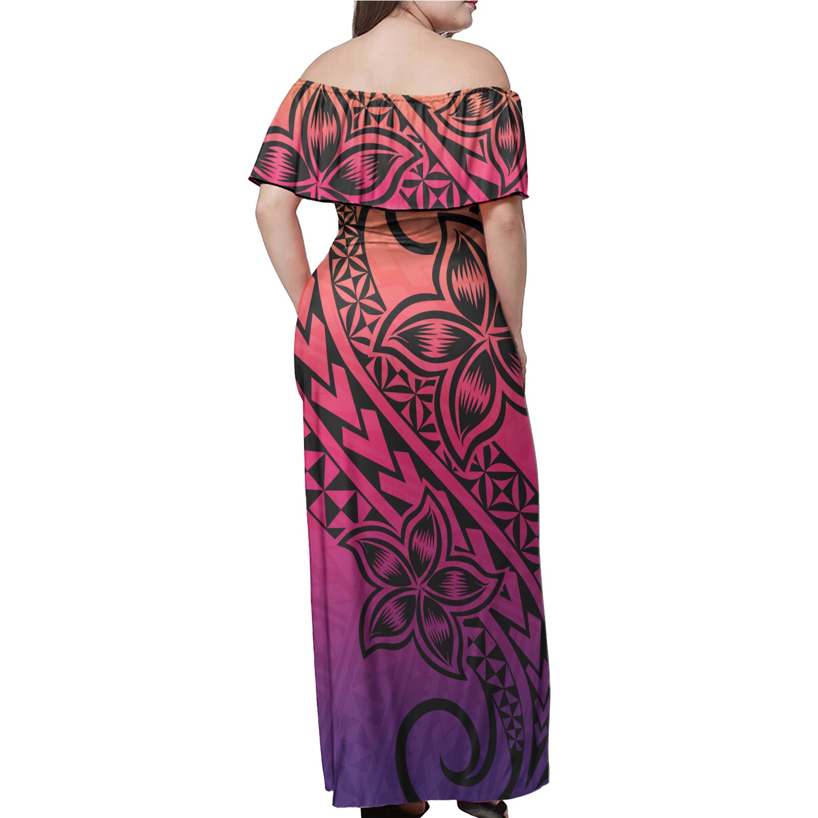 Hawaii Polynesian Woman Off Shoulder Long Dress - Polynesian Flower Purple