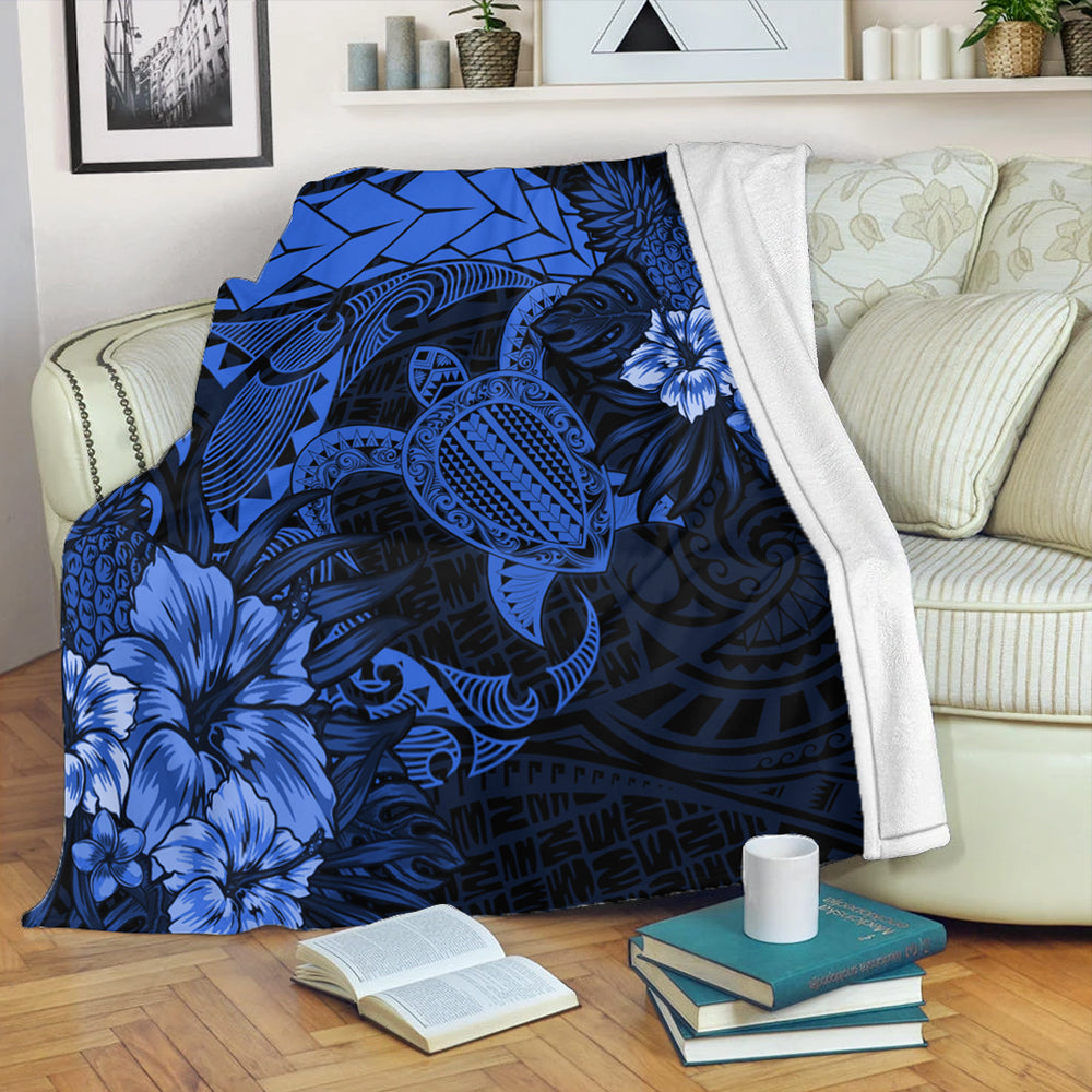 Hawaii Premium Blanket Hawaii Polynesian Turtle Tropical Blue
