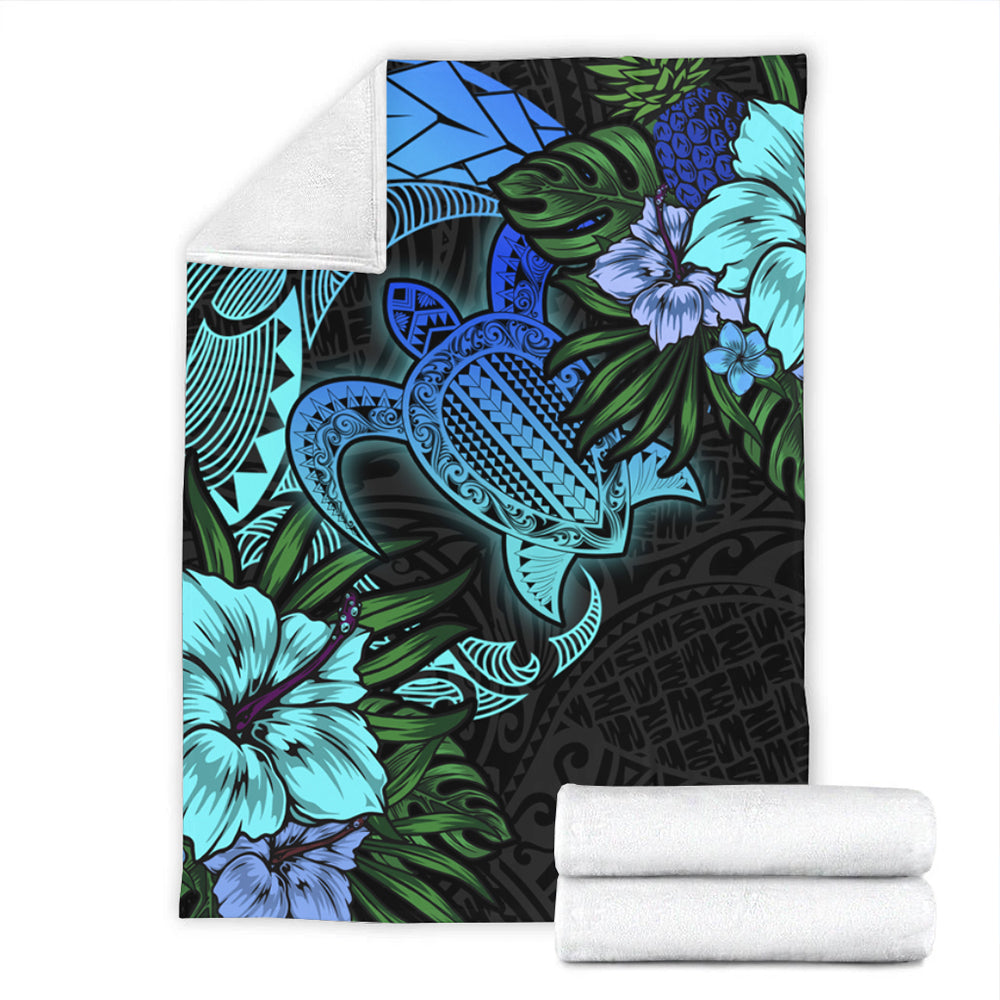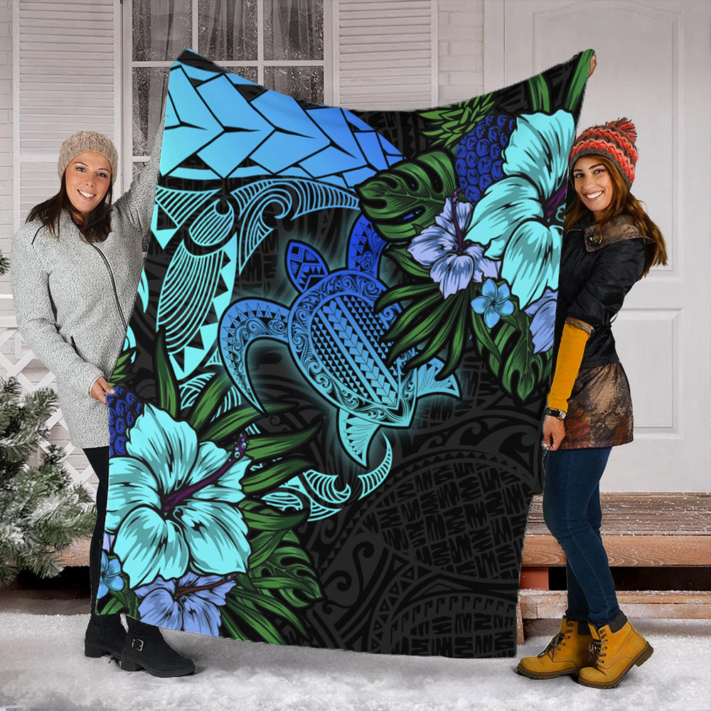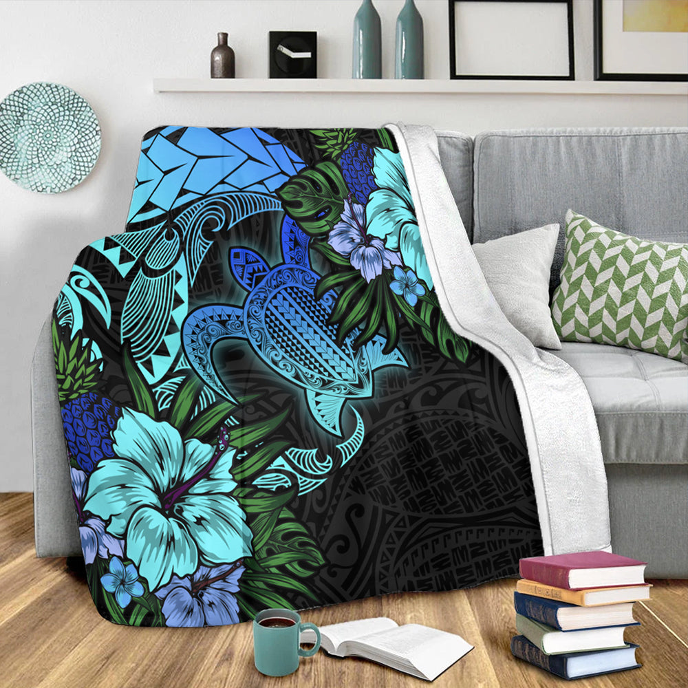 Hawaii Premium Blanket Hawaii Polynesian Turtle Tropical Blue Gardient Blue