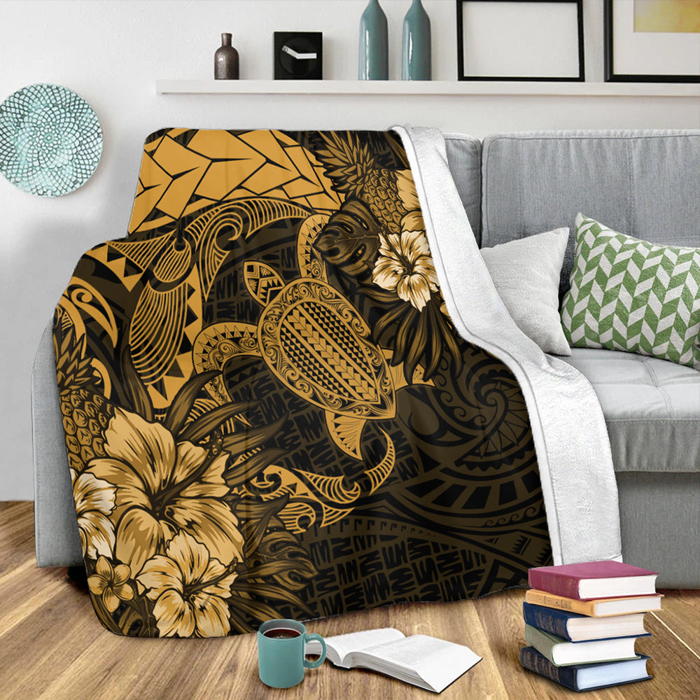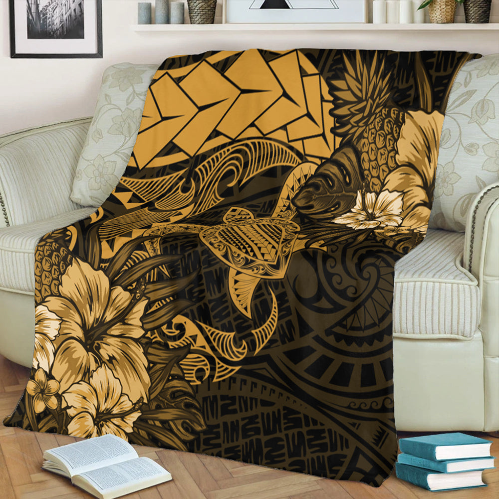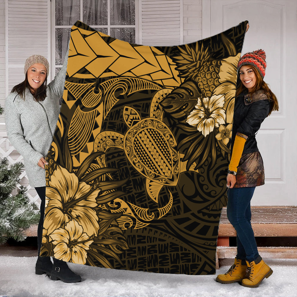 Hawaii Premium Blanket Hawaii Polynesian Turtle Tropical Golden
