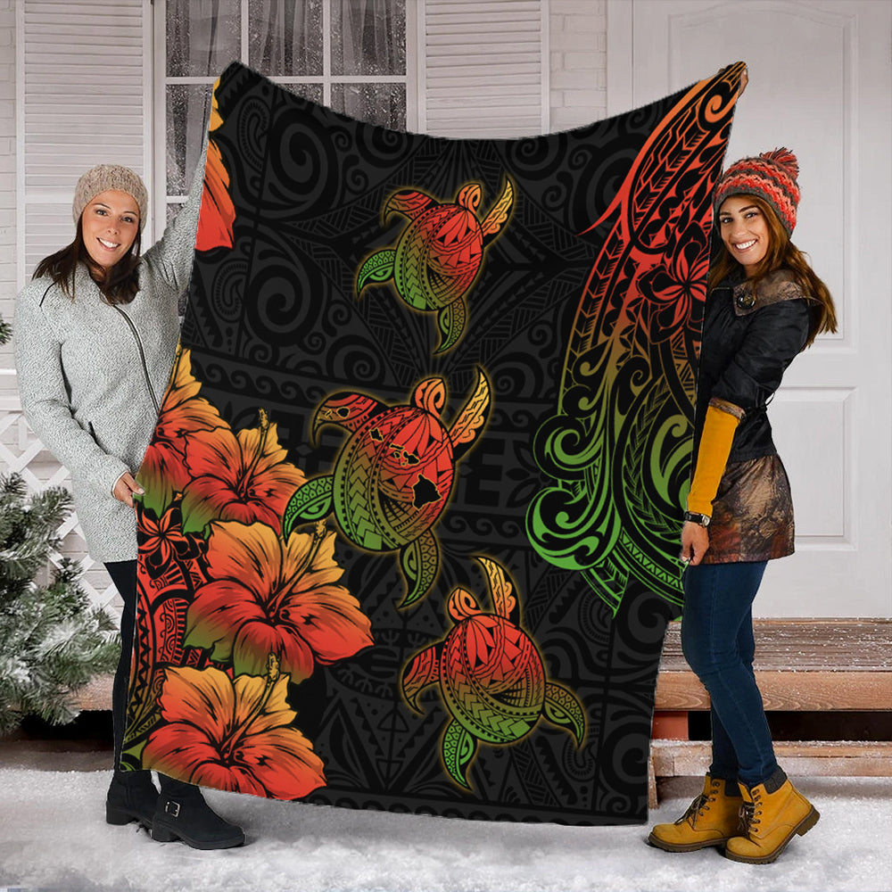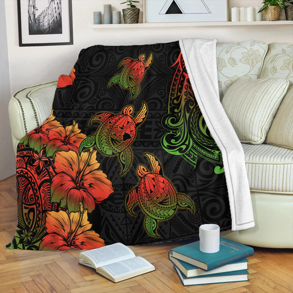 Hawaii Premium Blanket Hawaii Turtle Map Style Drawing Polynesian