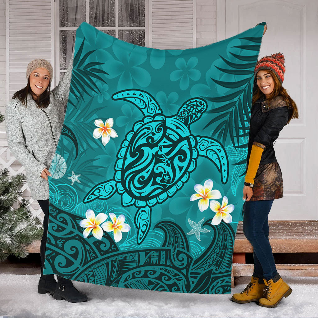 Hawaii Premium Blanket Hawaiian Sea Turtle & Floral Dreams
