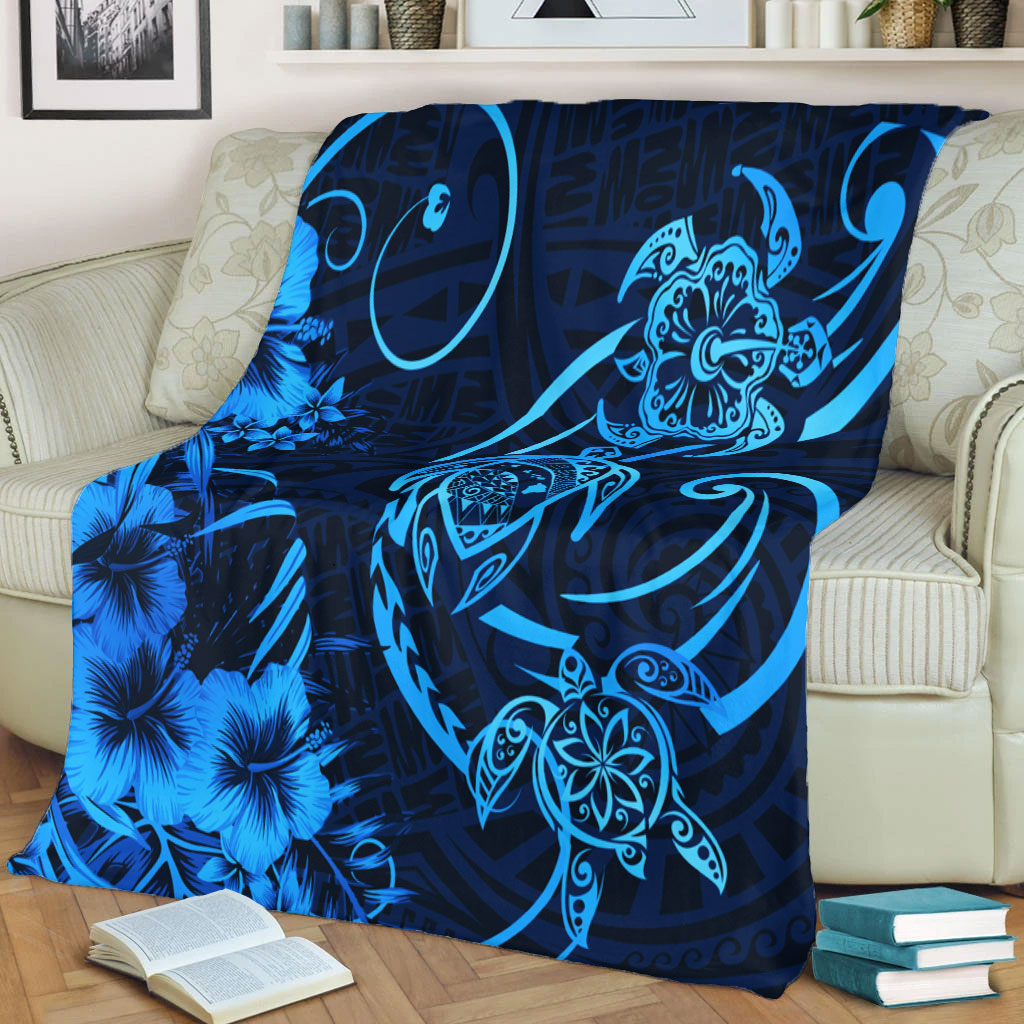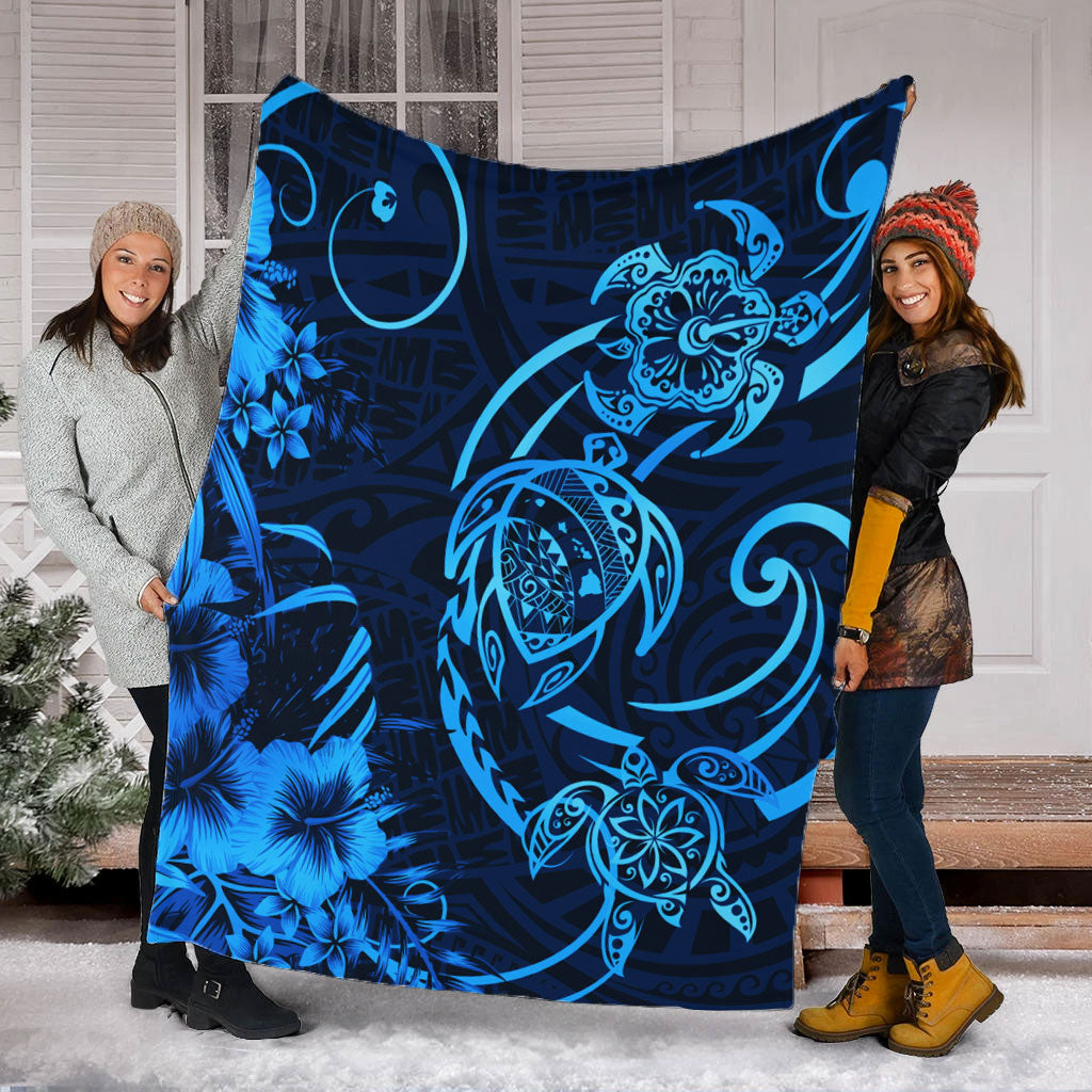 Hawaii Premium Blanket Hibiscus Flower And Map On The Back Turtle